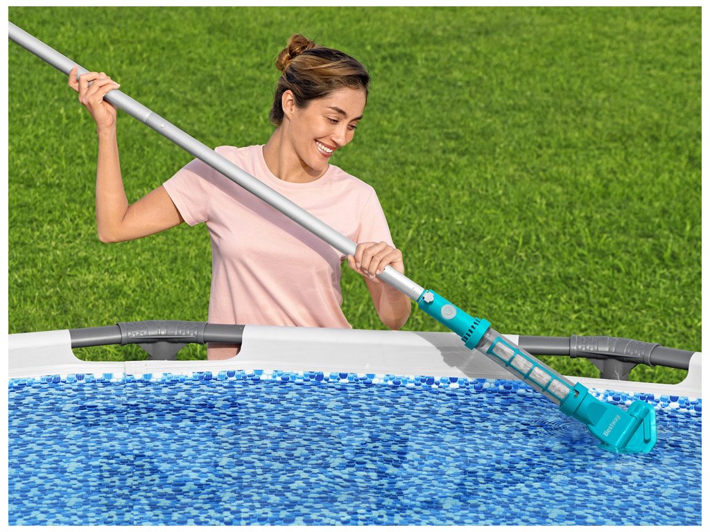 Păstrarea piscinei curate este acum mai ușor ca niciodată. Aspiratorul de piscină fără fir Bestway AquaSurge™ vă permite să îndepărtați eficient și convenabil resturile din apă, fără a fi nevoie să conectați cabluri sau furtunuri. Datorită acesteia, tu și familia ta te poți bucura de apă cristalină în piscină toată vara.