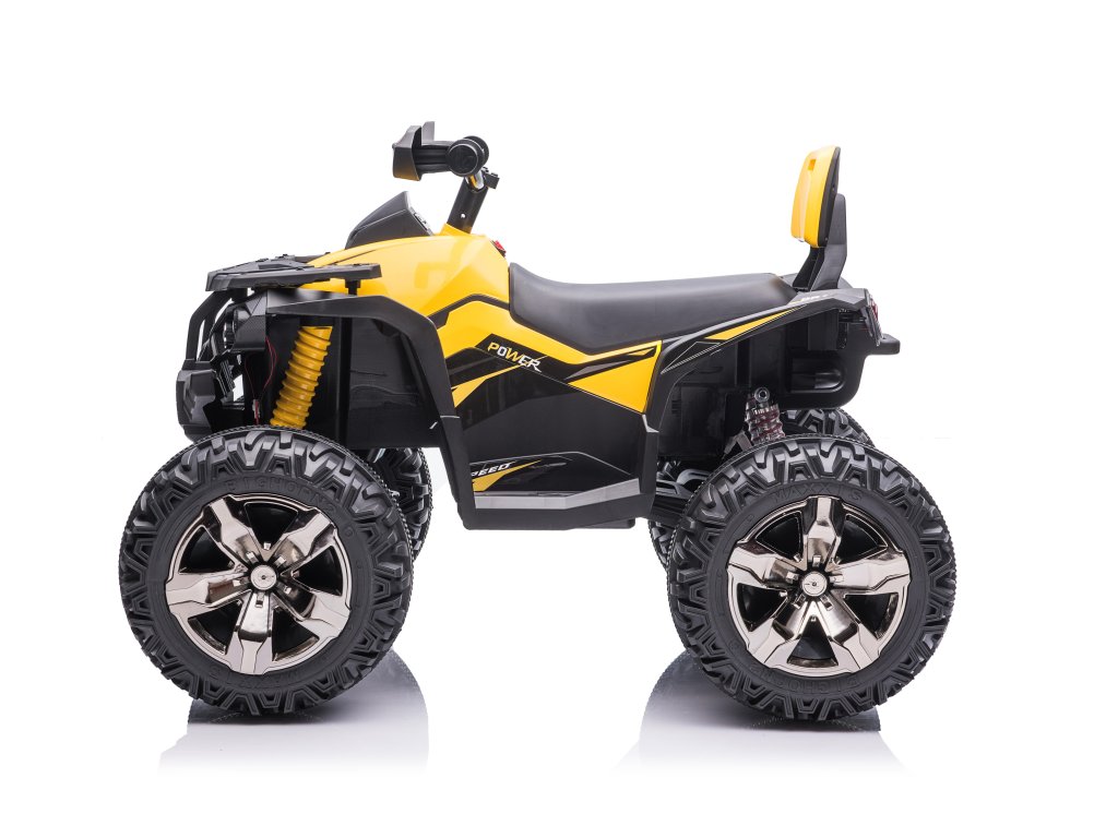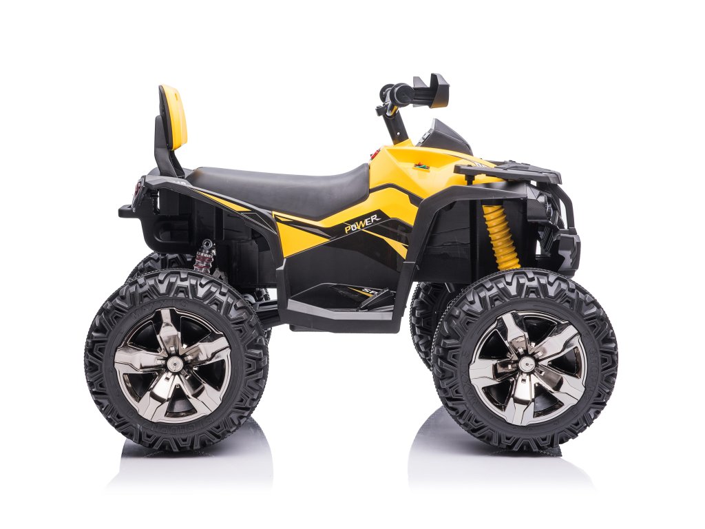 ATV electric pentru copii Power dispune de o baterie de 12V 14Ah și patru motoare de 45W, ceea ce înseamnă că ATV-ul are tracțiune 4x4. Roțile din spumă EVA și scaunul din piele ecologică asigură o călătorie confortabilă.