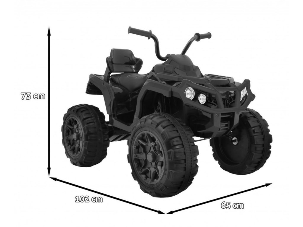 Quad-bicicletele electrice pentru copii este o modalitate excelentă de a introduce copiii în lumea autovehiculelor. Vehiculele electrice cu patru roți oferă o mulțime de distracție, fie în timpul plimbărilor în familie sau petrecând timpul în grădină. Datorită călăriei, copilul învață să conducă și își îmbunătățește abilitățile motorii. Quad-bike merge înainte și înapoi și are opțiunea de accelerare. Roțile sunt moale din EVA . Scaunul este foarte confortabil, are o formă ergonomică, astfel încât copilul va fi bucuros să se așeze din nou la volanul quad-ului. Quad-bike-ul are și iluminare LED. Quad-bike-ul este certificat de marca europeana de siguranta CE si este potrivit pentru copii incepand cu varsta de 3 ani.
