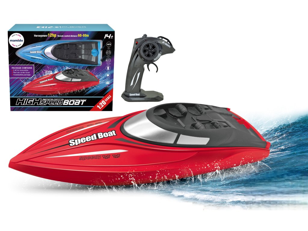 Barcă cu telecomandă High Speed Boat roșu, 12CP, 80 m