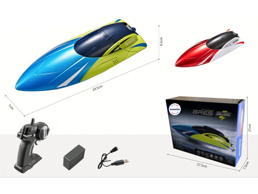 Viteză, adrenalină și distracție pe suprafața apei! Barca RC Ares este o jucărie ideală pentru copii și adulți pasionați de modele de curse. Datorită motorului puternic și designului compact, poate face față unei viteze rapide pe lac, piscină sau iaz. Controlerul modern de 2,4 GHz asigură un semnal stabil și manevrabilitate ușoară înainte, înapoi și lateral.