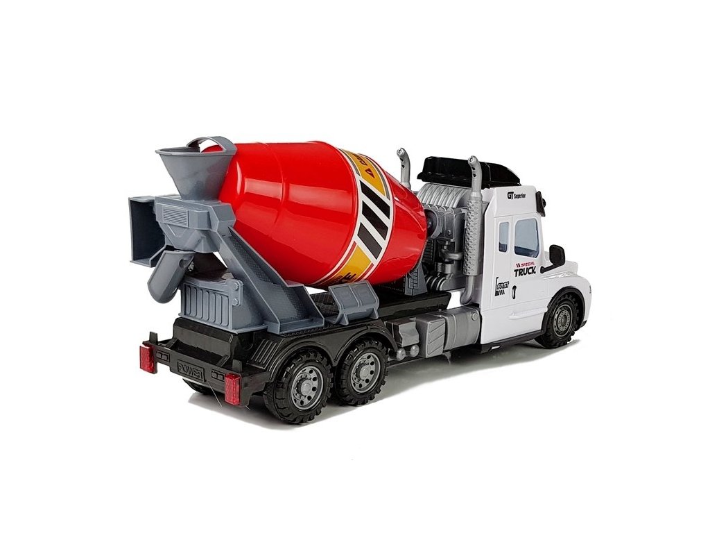 Mixerul cu telecomanda este realizat din materiale de cea mai inalta calitate cu cea mai mare precizie pana la detalii. Betoniera este decorată cu elemente negre și roșii. Setul include o telecomanda si cu ajutorul ei puteti conduce in toate directiile.