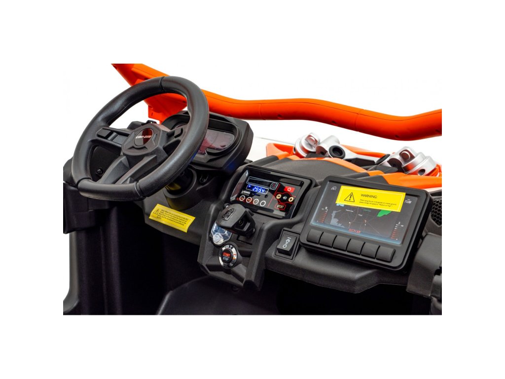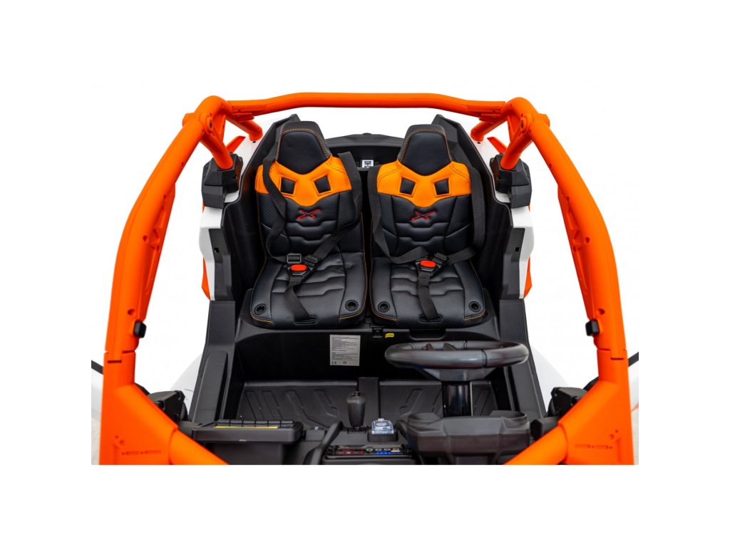 Siguranța copiilor este o prioritate . Vehiculul este echipat cu o funcție de pornire lentă care previne pornirile bruște. Două scaune separate, acoperite cu piele ecologică, sunt confortabile și echipate cu centuri de siguranță care asigură o călătorie sigură indiferent de teren.
