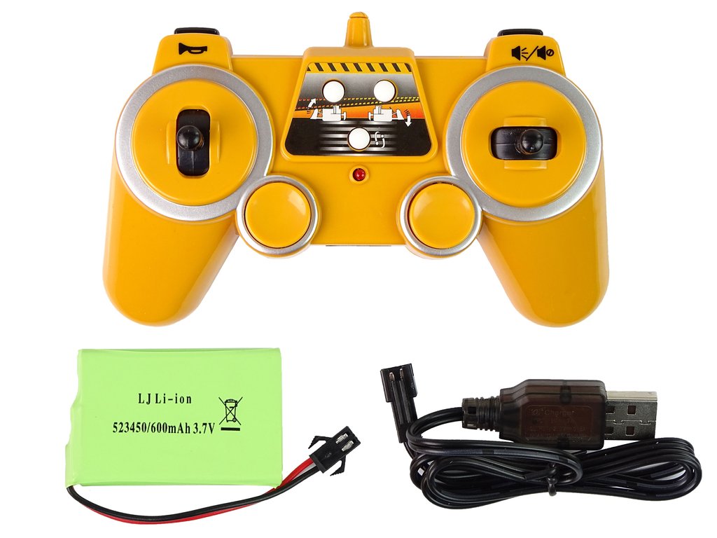 Telecomanda are o frecventa de 2,4 GHz iar controlul este foarte simplu. Cu ajutorul acestuia, operatorul poate schimba direcțiile înainte/înapoi și dreapta/stânga. Se mișcă pe roțile pe șenile, iar brațul excavatorului se mișcă în sus și în jos.
