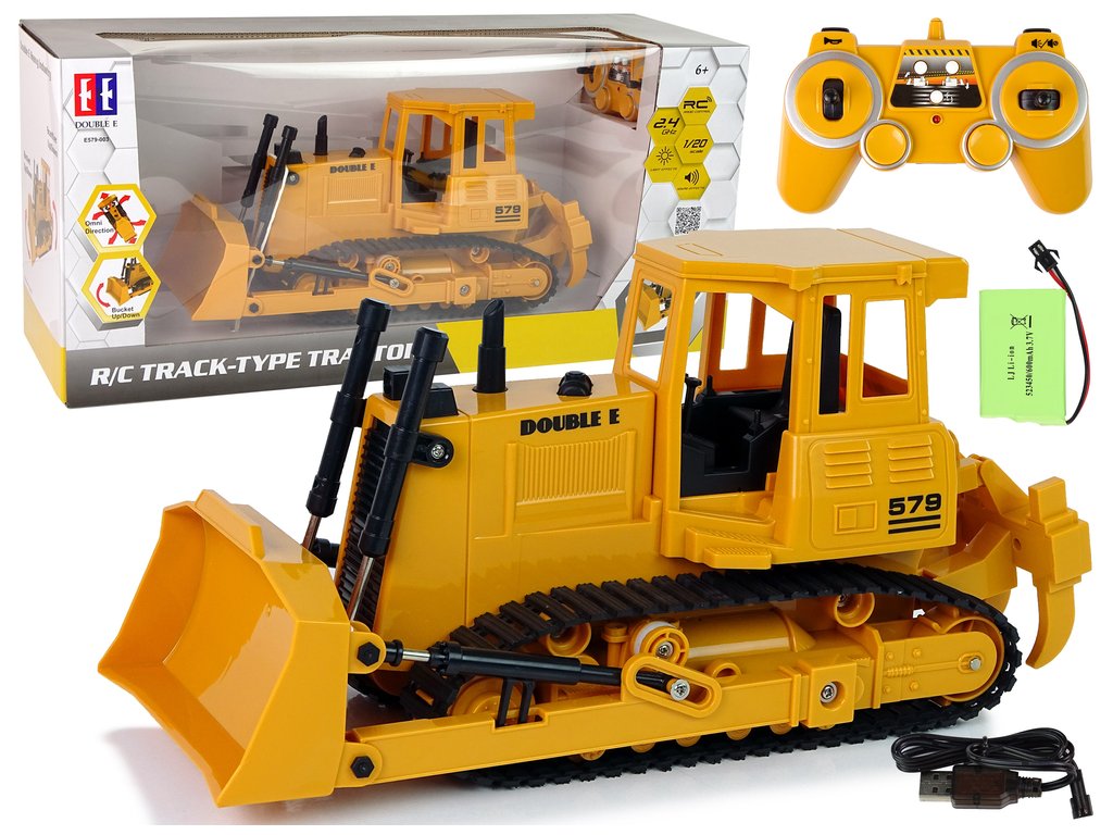 Un buldozer telecomandat , una dintre mașinile de construcții care nu pot lipsi pe un șantier. Conducerea unui astfel de utilaj va încânta copilul și va asigura o lungă perioadă de distracție.