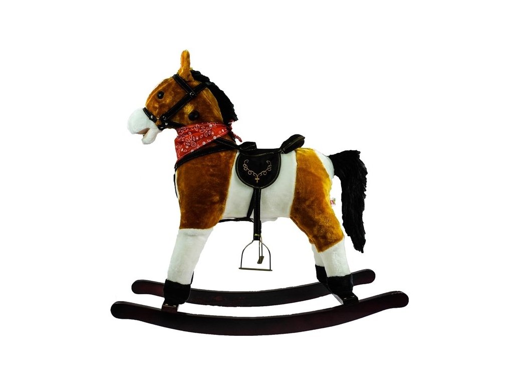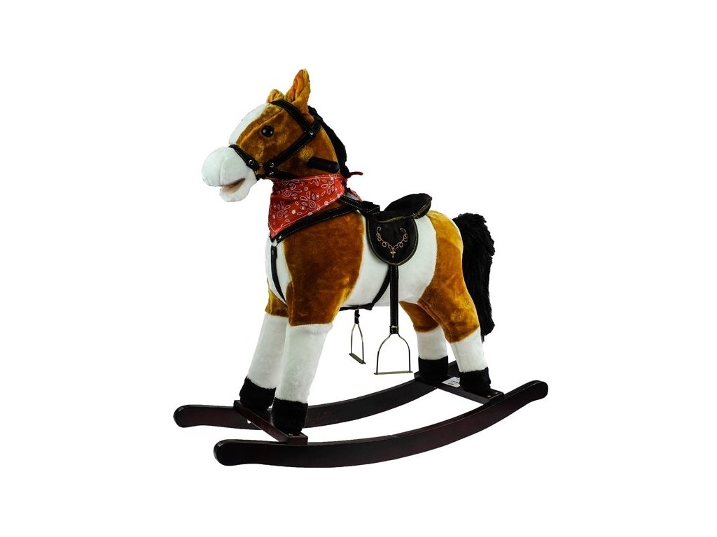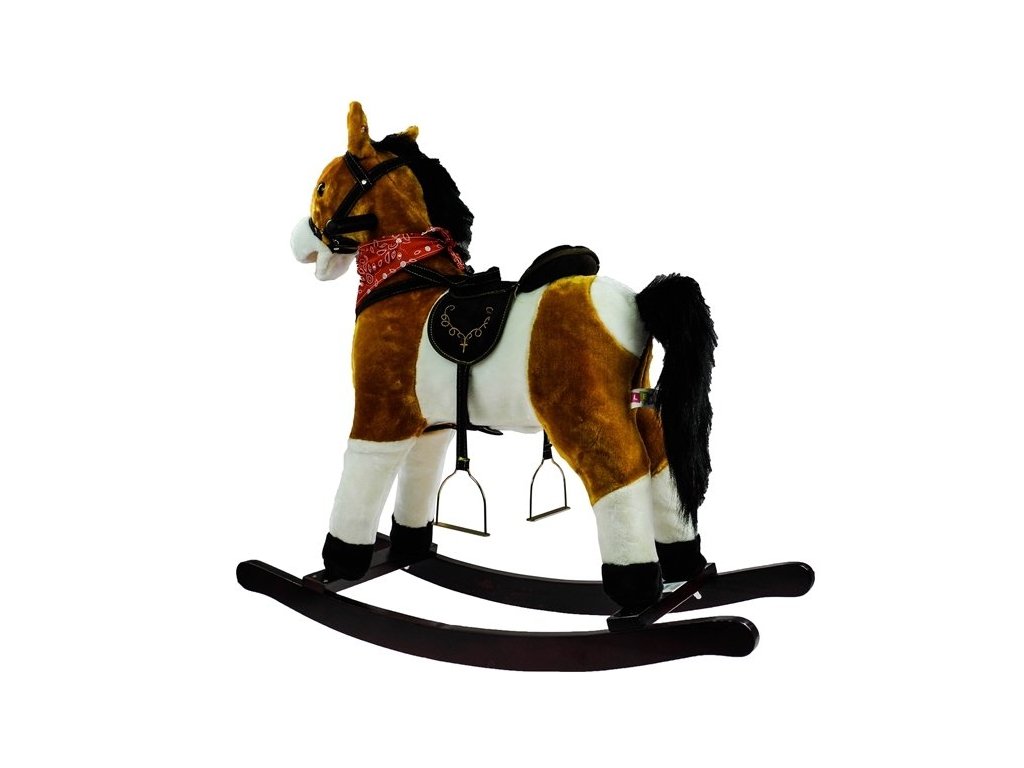 Calul balansoar este din plus moale, are manere din lemn si baza din lemn. Emite sunete de galop și mârâit. O jucărie grozavă pentru toți micii cowboy. Are o culoare maro deschis completată de elemente albe.