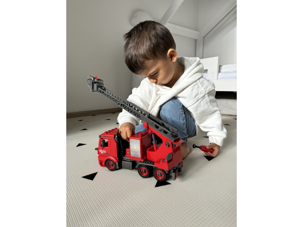 - Lumini și sunet : Odată ce jucăria este lansată, luminile roșii vor clipi și o sirenă realistă va suna, ca și cum o adevărată mașină de pompieri se grăbește spre foc.