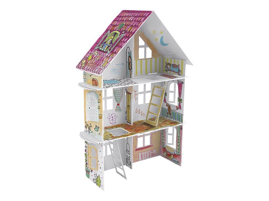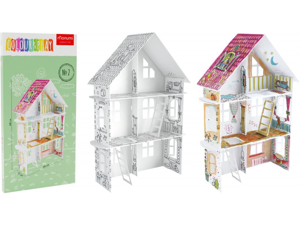O carte de colorat spațioasă, pe mai multe niveluri, realizată din carton rezistent.