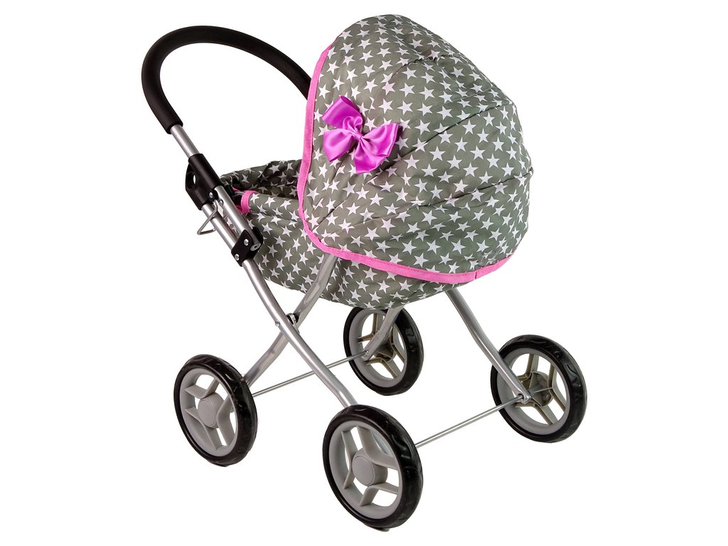 Cărucior pentru păpuși gri cu stele albe