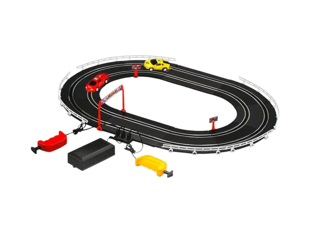 Pista de curse electrică distractivă oferă curse dinamice pentru două mașinuțe sport care se deplasează pe pistă cu ajutorul alimentării electrice. Datorită designului realist, curbelor și pistei lungi, copiii se vor bucura de ore întregi de distracție captivantă. Controlerele permit reglarea vitezei și competiția împotriva prietenilor sau părinților.