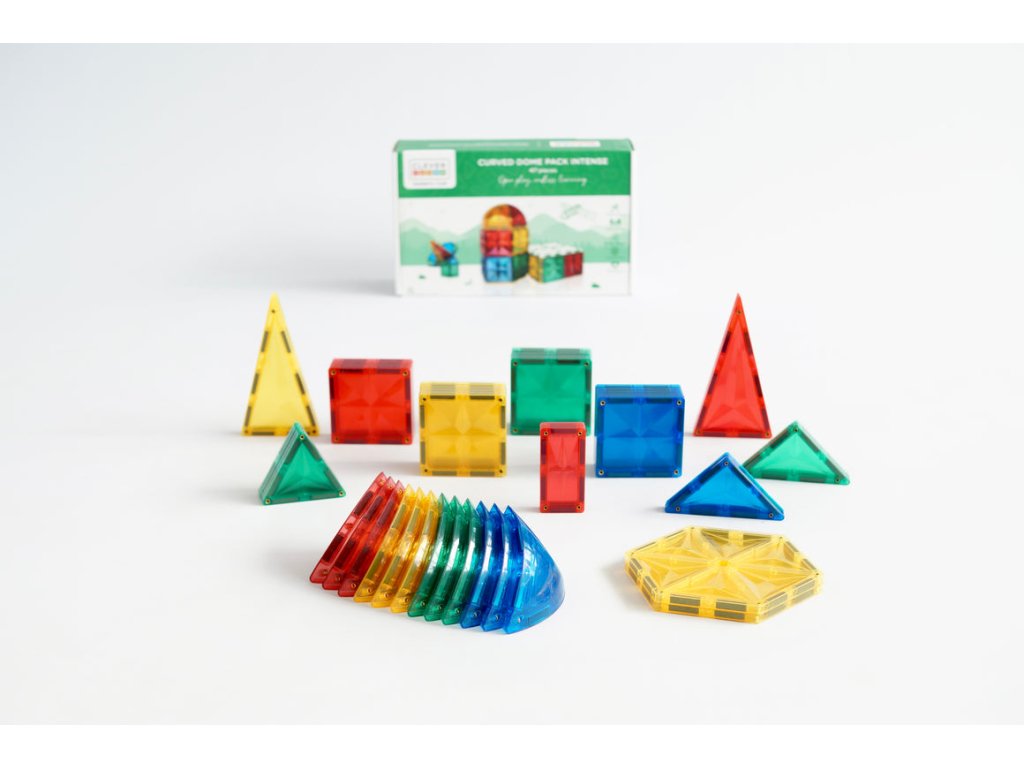 Piesele curbate susțin imaginația spațială, gândirea creativă și dezvoltarea motricității fine. Copiii sunt familiarizați într-un mod distractiv cu noi forme geometrice, învață să gândească „în afara cutiei” și descoperă posibilitățile construcției 3D. Setul este pe deplin compatibil cu alte seturi de construcție Cleverclixx, astfel încât va completa perfect orice colecție de piese magnetice.