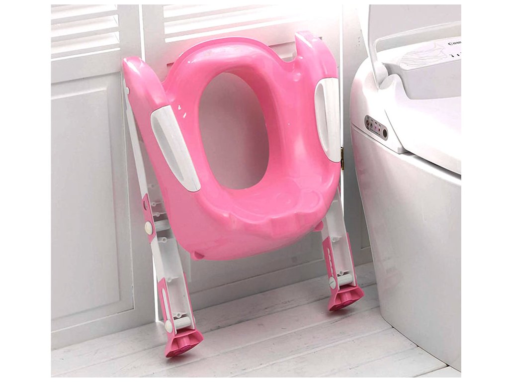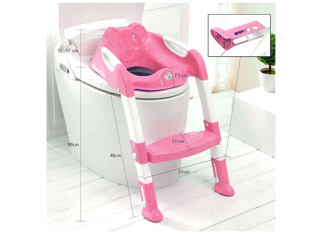 În timp, când copilul crește puțin, treptele pot fi îndepărtate și se poate folosi doar capacul de toaletă.