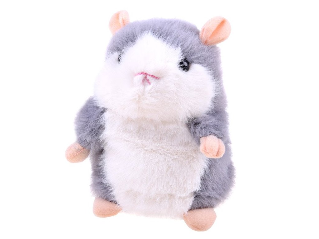 Un hamster moale drăguț este o jucărie veselă care repetă tot ce îi spui . Hamsterul sare fericit și scoate zgomote amuzante.