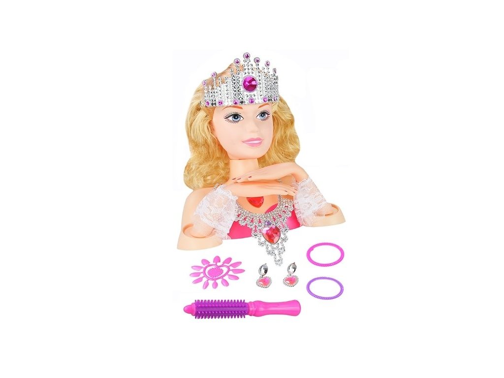 Îmbrăcați capul de păpușă cu coroană și accesorii