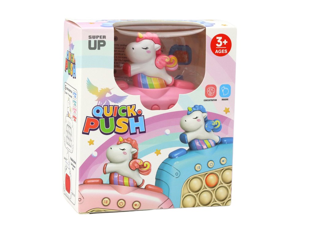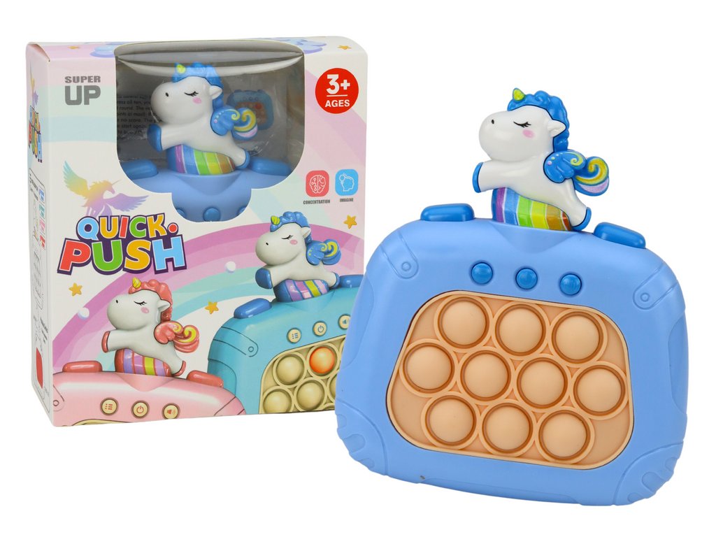 Joc senzorial Unicorn Pop It cu baterii Lumini Sună roz albastru