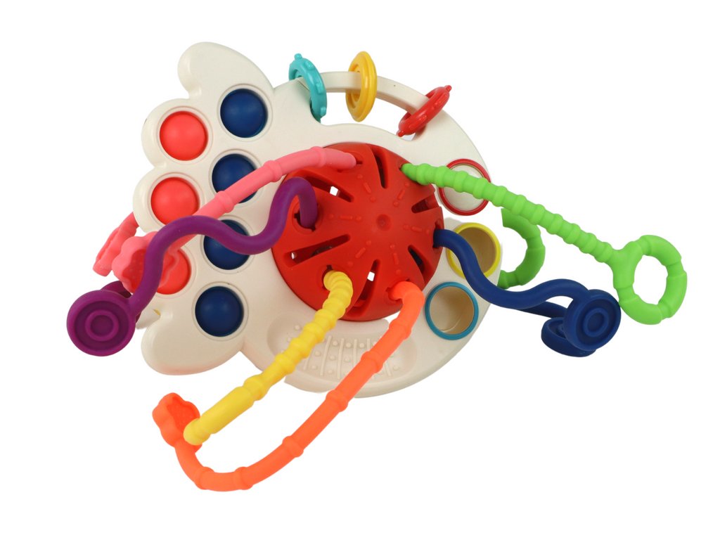 Jucăria senzorială distractivă vă permite nu numai să vă bucurați de a trage fire colorate de la un capăt la altul, ci și să stoarceți și să glisați bulele. Combină diferite jocuri pentru a oferi un alt tip de distracție în timp ce dezvoltă abilitățile motorii.