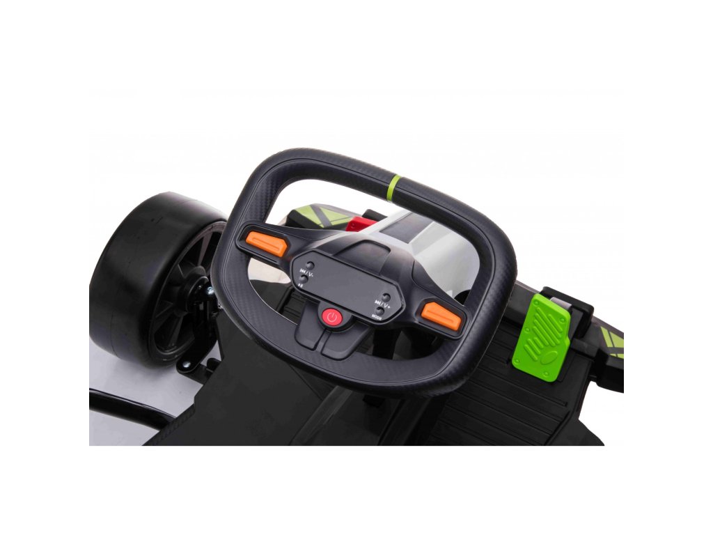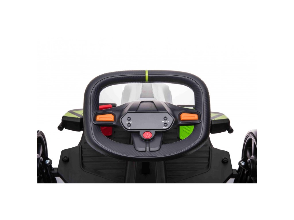 Un go-kart electric pentru copii cu o baterie de 24V 10Ah și două motoare puternice de 150W nu poate lipsi din niciun garaj pentru copii. Kartul are iluminare LED din spate și un panou muzical cu radio FM și Bluetooth.