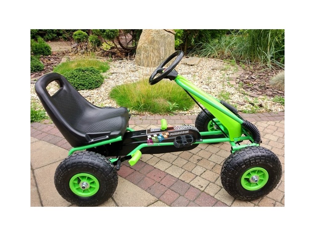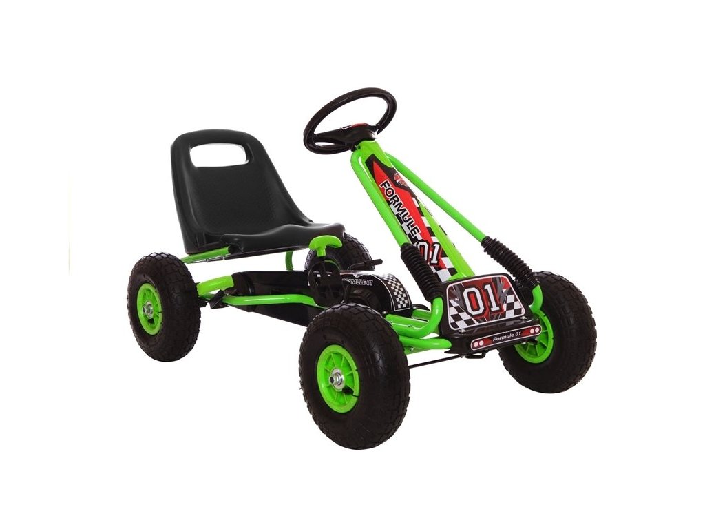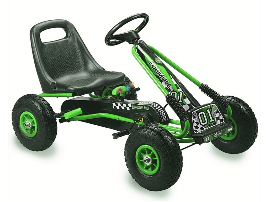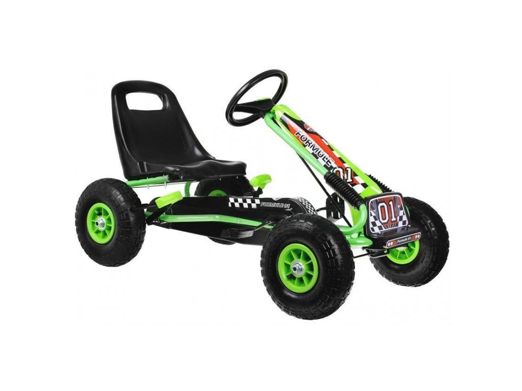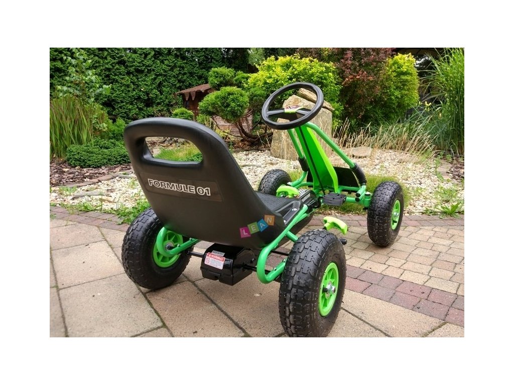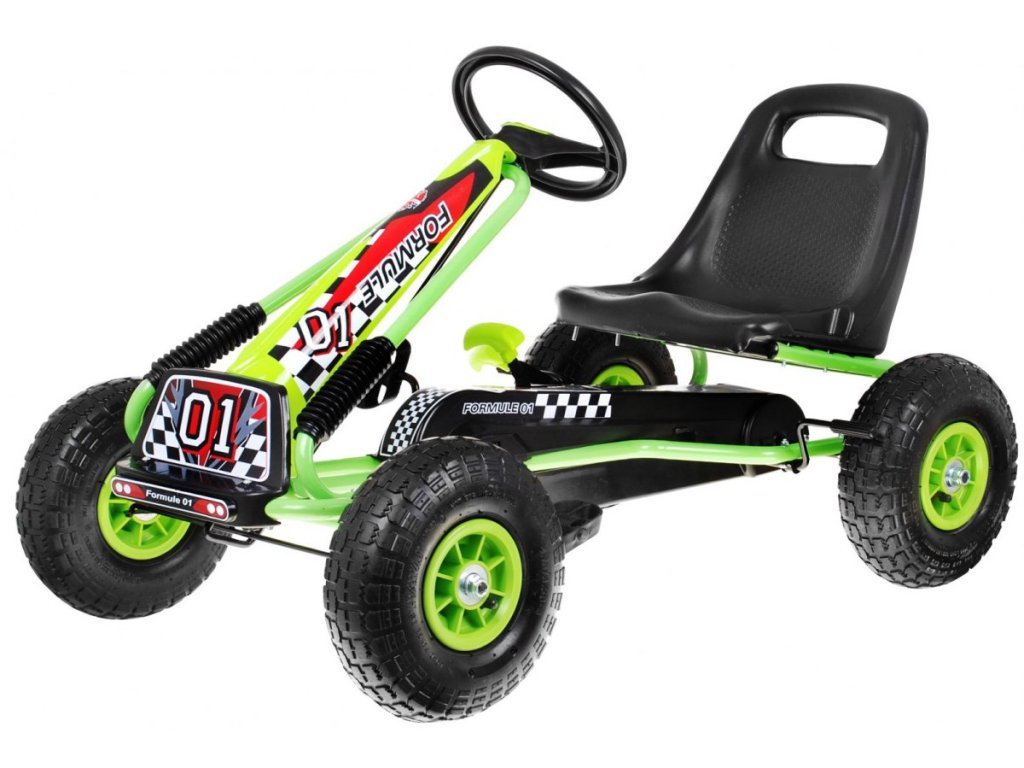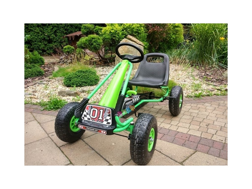 Kartul pentru copii formula 01 este sigur și confortabil. Are un cadru special conceput și un design unic. Mai presus de toate, are roți gonflabile din cauciuc , datorită cărora călătoria devine mai confortabilă. Kartul are o frână de mână pe două roți și un scaun reglabil pe 3 nivele.