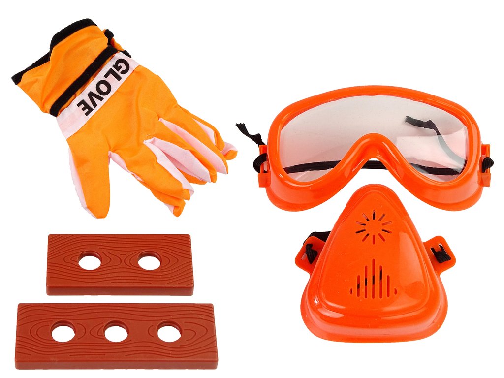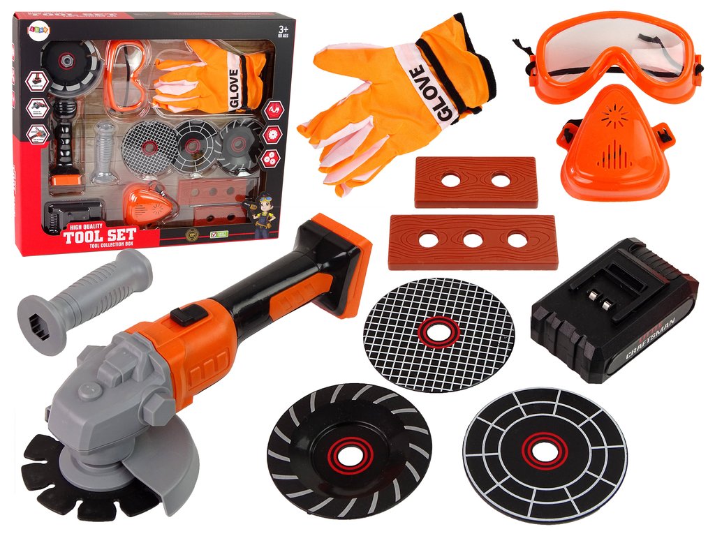A fost realizat din plastic, care este responsabil pentru greutatea redusă a elementelor individuale. Setul include si trei discuri interschimbabile, diverse finisate. Masca și ochelarii de protecție vor proteja împotriva prafului, de asemenea, este ceva de reținut! Divertisment de succes garantat!