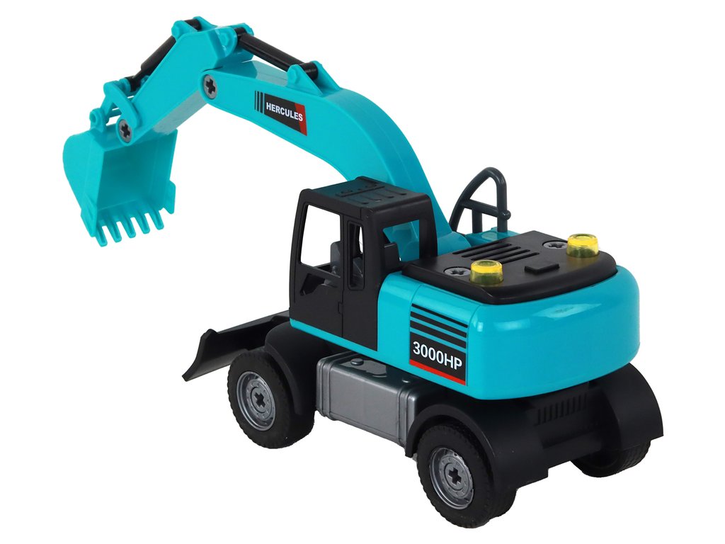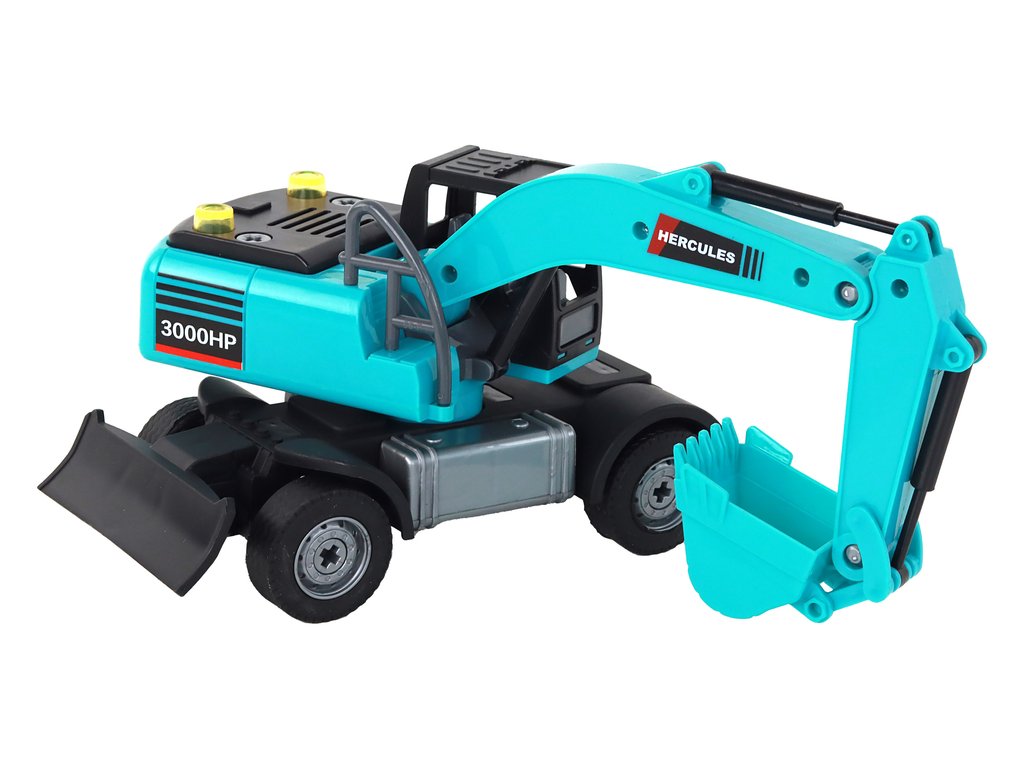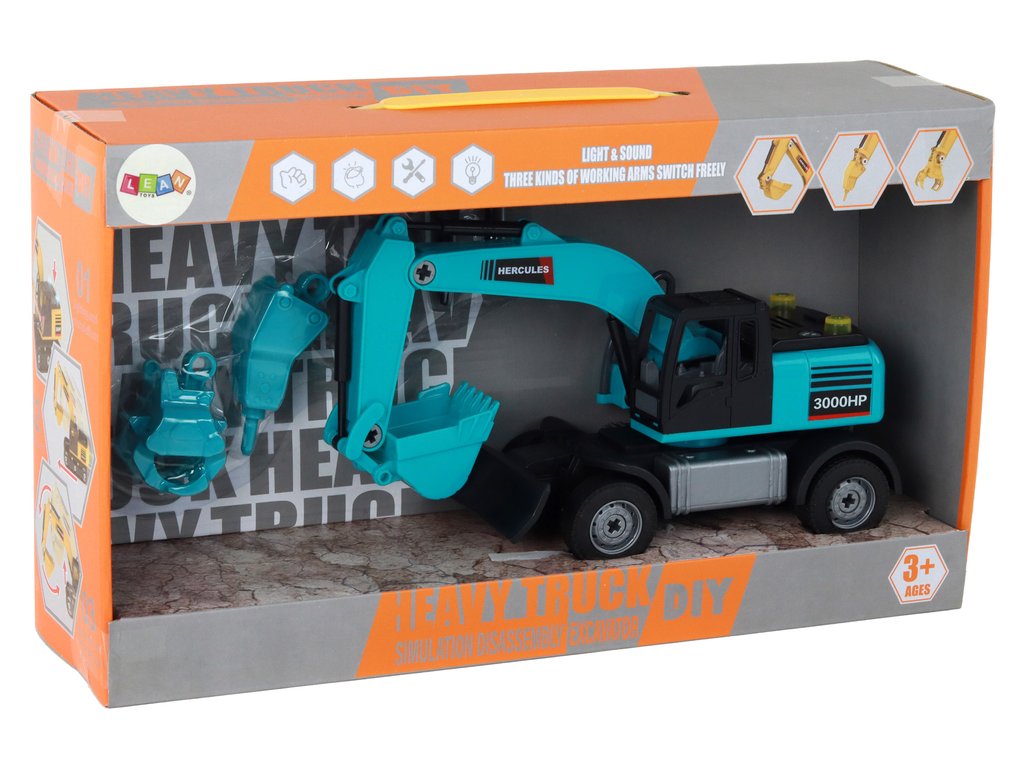 În pachet sunt și două lopeți, care pot fi adaptate cu ușurință la excavator în funcție de tipul de muncă pe care o face copilul. Când excavatorul funcționează , efectele de lumină și sunet oferă o atmosferă dinamică și realistă.