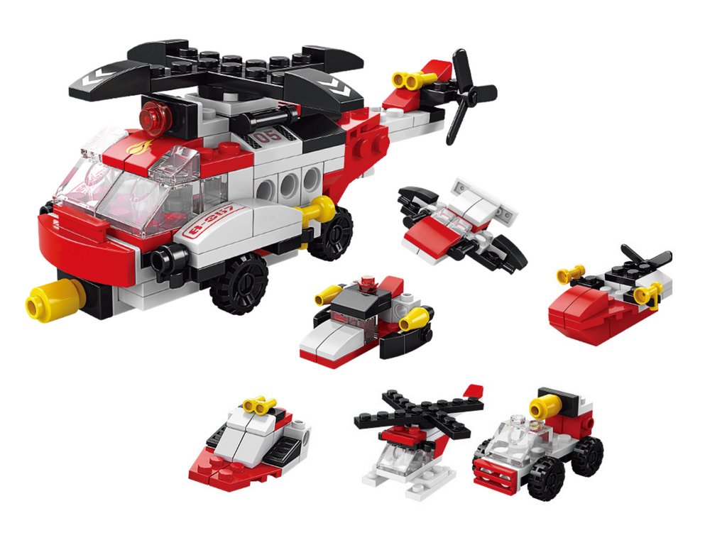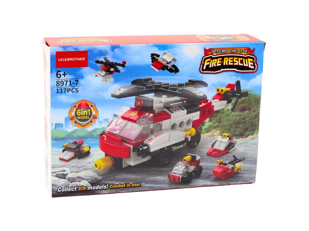 Trusa de construcție a elicopterului de pompieri oferă distracție creativă pentru iubitorii de structuri, tineri și bătrâni. Setul conține 117 piese prelucrate cu precizie care vă permit să asamblați până la șase modele diferite de vehicule.