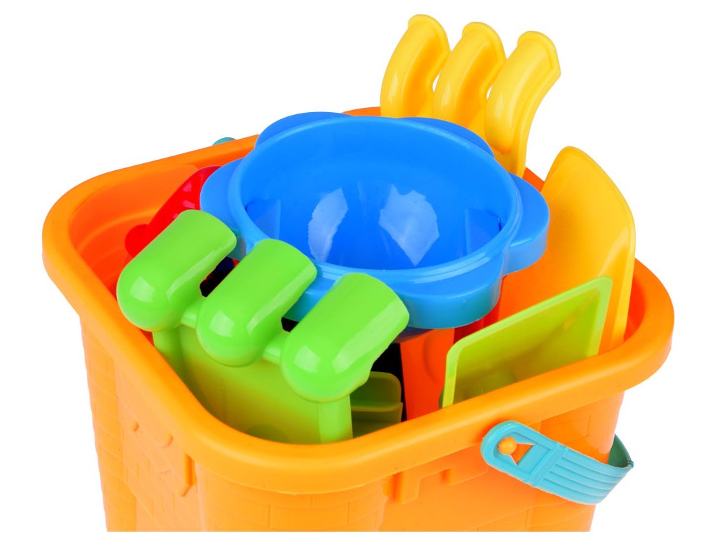 Setul contine toate elementele necesare pentru a construi diferite tipuri de turnuri, cetati, castele sau case. Are două modele de lopeți și greble, ceea ce îl face excelent pentru crearea atât a structurilor mai mici, cât și mai mari. În plus, veți găsi în set până la trei matrițe, datorită cărora puteți crea cu ușurință castele de nisip de diferite dimensiuni.