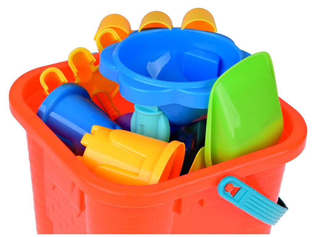 Când distracția se termină, depozitați doar toate elementele în găleată. Găleata are un mâner confortabil din silicon, care îl face ușor de ținut în mâinile copiilor mici. Multe ore de distracție sunt garantate cu setul nostru!