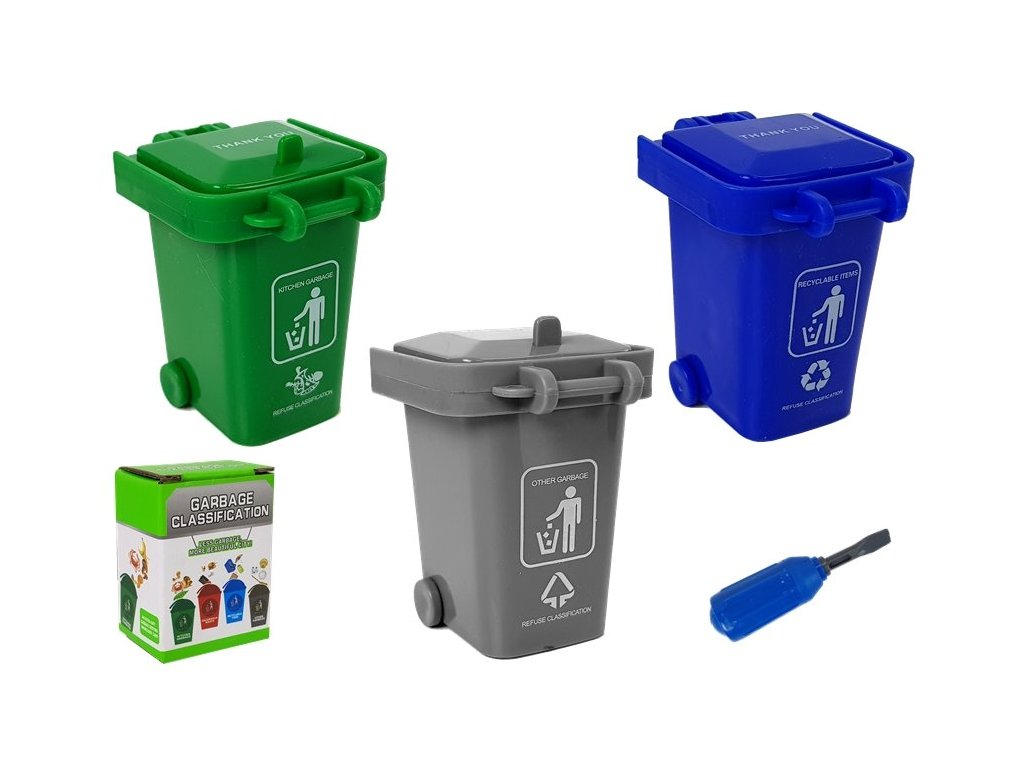 - 4 coșuri de gunoi: gri, verde, albastru, roșu