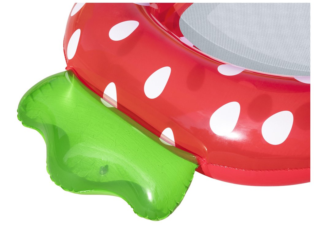 Salteaua este formata din doua camere de aer iar fundul este din plasa rezistenta care permite contactul constant cu apa. Culoarea roșu intens iese în evidență în apă și atrage atenția, datorită căreia ne putem observa cu ușurință copilul în timp ce ne relaxăm în piscină sau pe lac.
