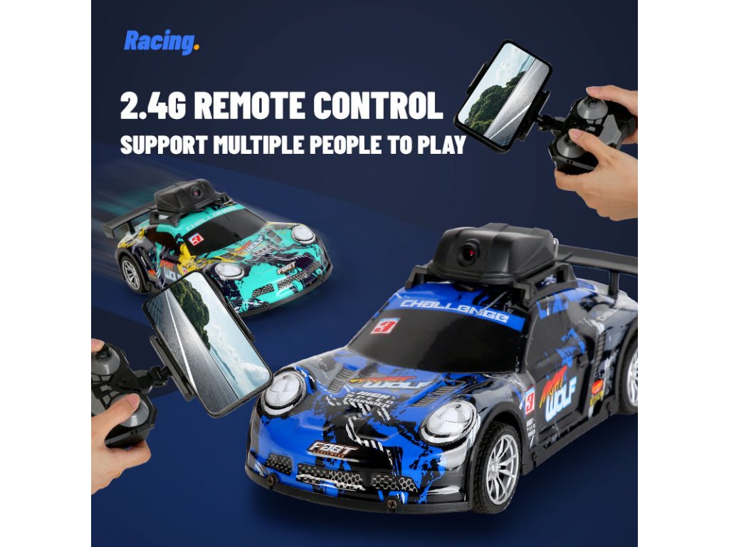 Experimentează o cursă palpitantă cu mașina de curse RC cu cameră WiFi, care îți permite să vezi traseul direct din perspectiva mașinii! Datorită funcției de transmisie FPV, poți urmări cursa în timp real pe telefonul tău mobil, realiza fotografii și videoclipuri și te poți bucura de distracție într-un mod complet nou.