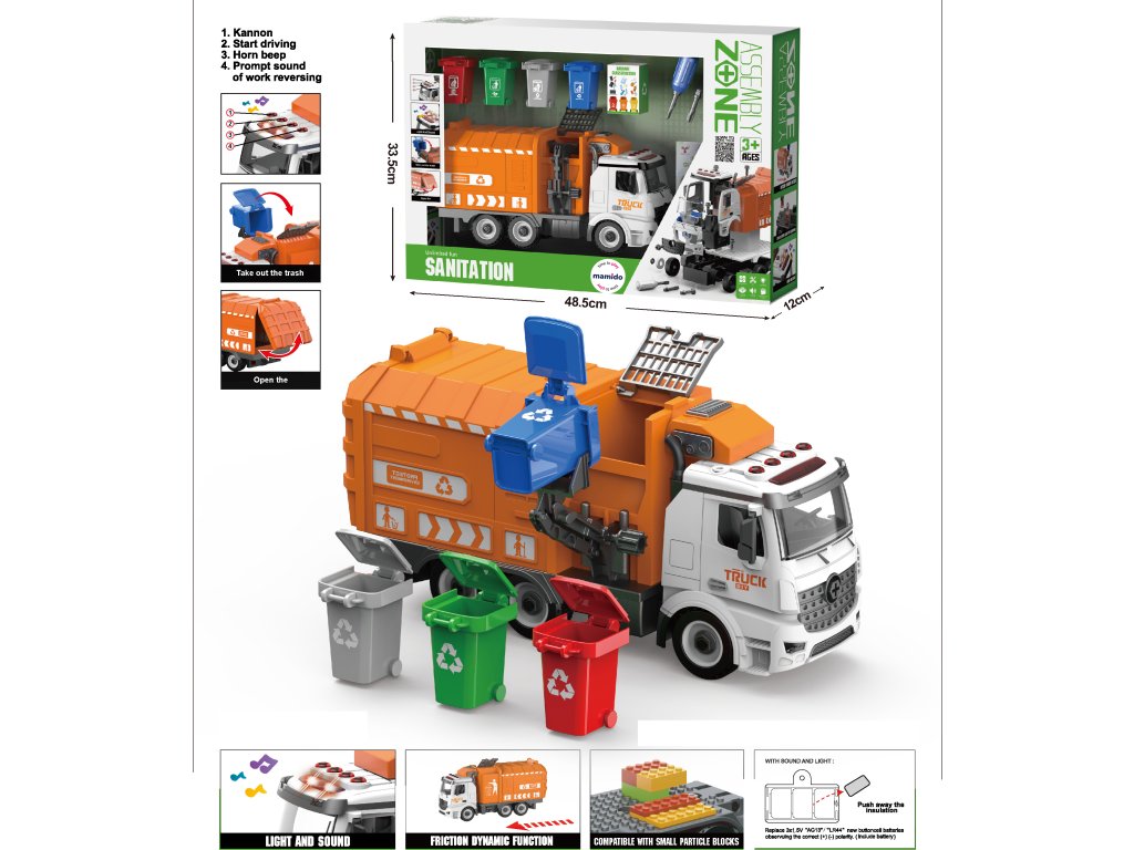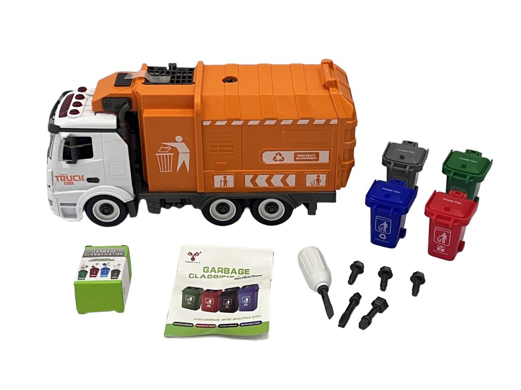 Descoperă camionul de gunoi metalic, care nu doar curăță, ci și distrează și educă copiii. Este fabricat într-un stil modern, cu o nuanță verde care îi adaugă farmec. Propulsia prin fricțiune asigură o mișcare ușoară, iar setul include coșuri colorate de gunoi și decupaje din hârtie. O jucărie ideală pentru camera copiilor. Construcția solidă din metal garantează durabilitate și rezistență, iar educația interactivă despre sortarea deșeurilor face din acest vehicul un cadou grozav pentru micii pasionați de mașini.