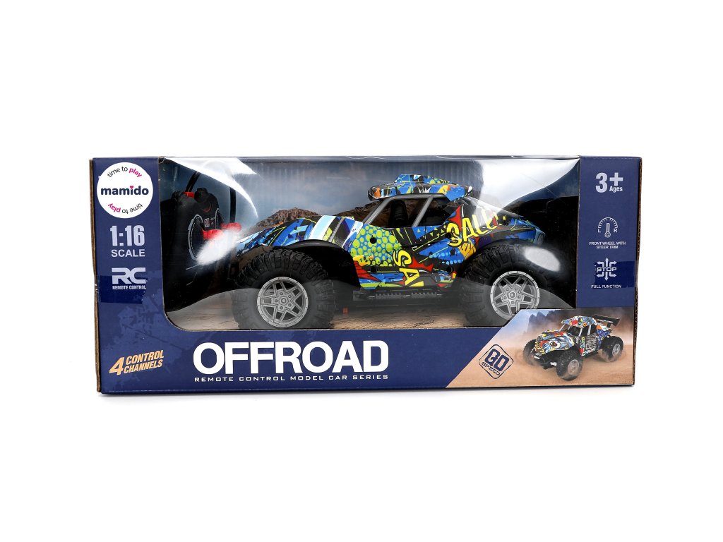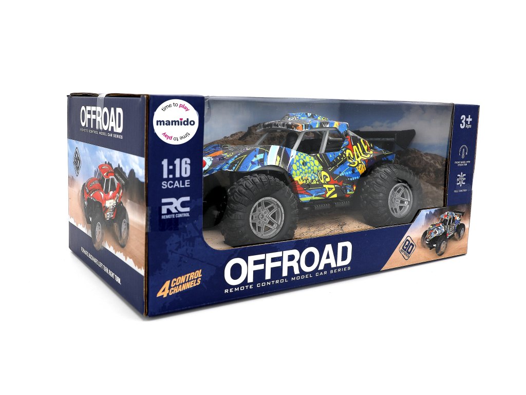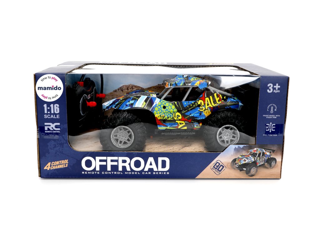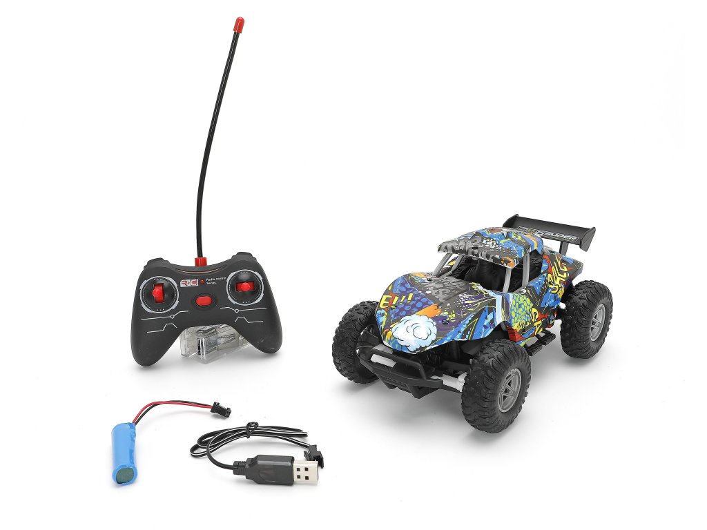 Mașinuța RC Buggy colorată la scara 1:16 este jucăria ideală pentru toți șoferii mici cărora le plac cursele rapide și aventurile off-road. Datorită anvelopelor mari și construcției robuste, se descurcă chiar și pe suprafețe denivelate și oferă multă distracție acasă sau afară.
