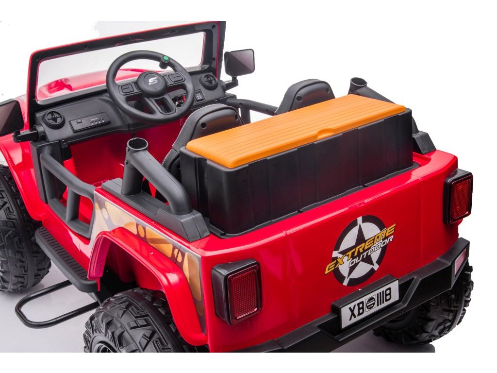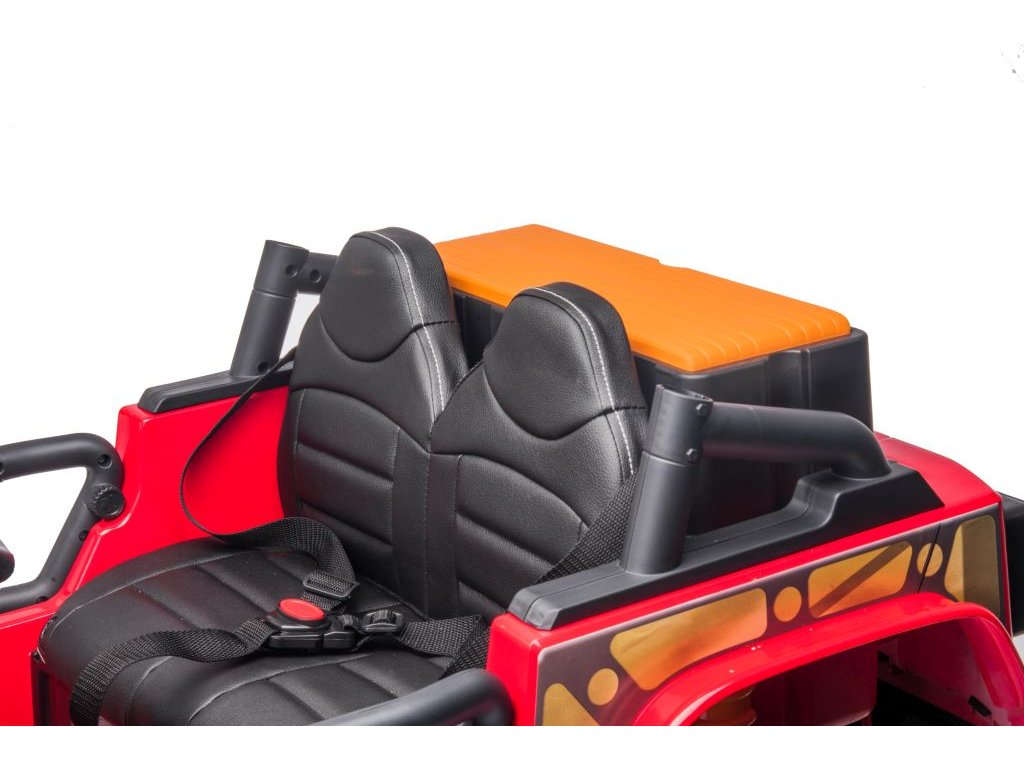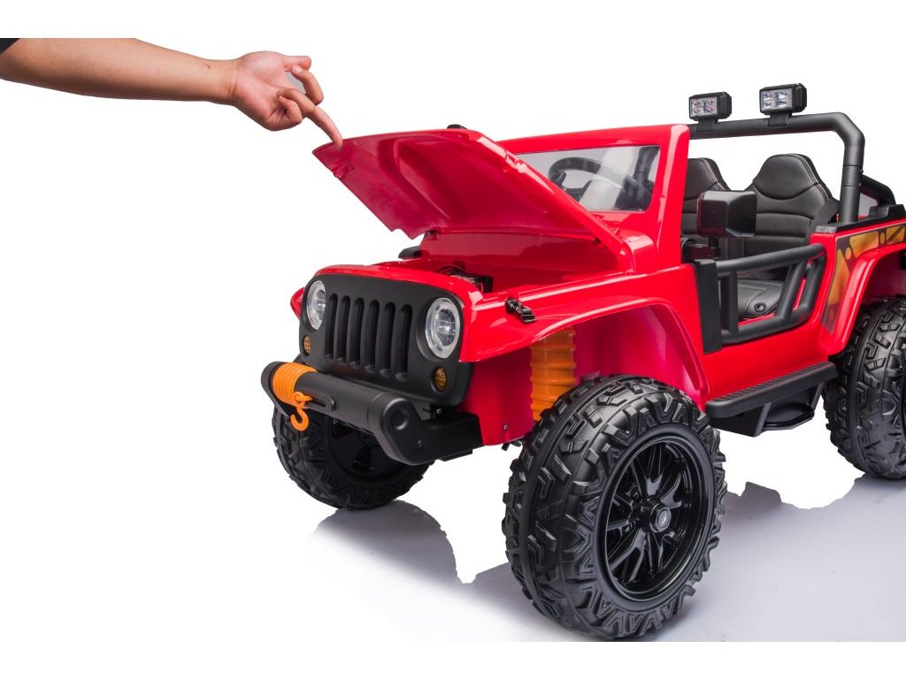 Mașinuța electrică jeep 4Speed are patru motoare cu o putere de 200W și o baterie cu o capacitate de 24V 7Ah. Mașinuța are un panou muzical cu melodii preîncărcate, intrări pentru USB și Bluetooth. Pe volan este amplasat claxonul.Mașinuța este echipată cu lumini LED frontale. Mașinuța pornește cu ajutorul cheii și veți auzi sunetele caracteristice ale motorului.