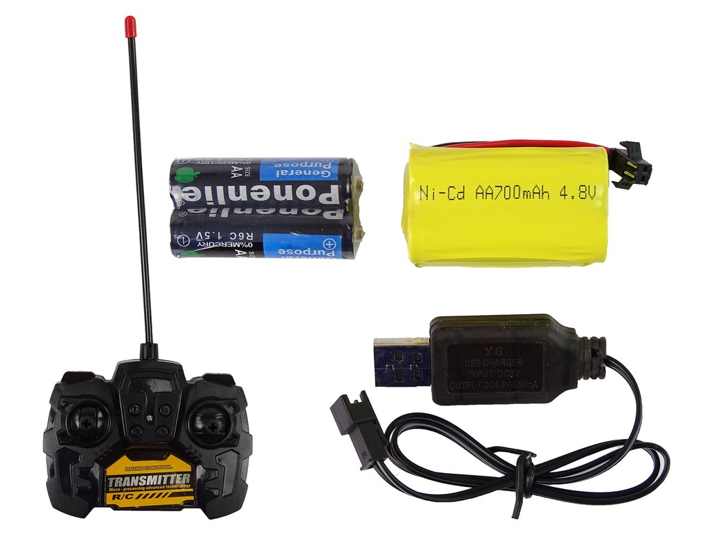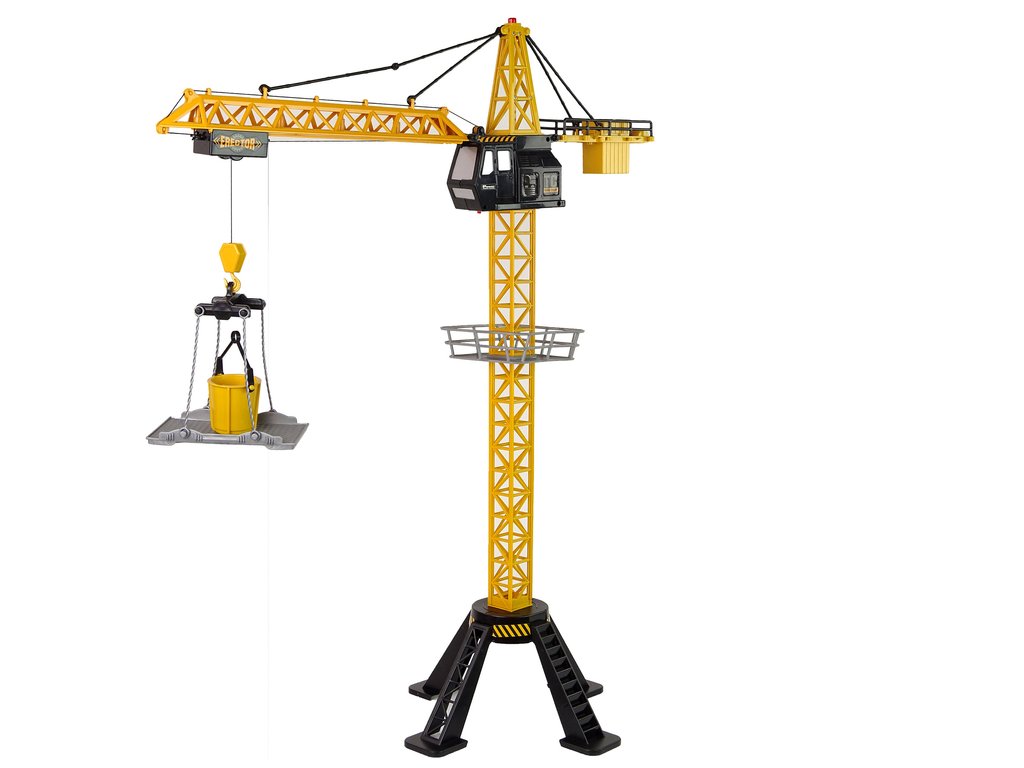 Telecomanda cu o frecvență de 27 MHz permite rotirea părții superioare a macaralei și coborârea frânghiei. Poziția cârligului pe brațul macaralei este schimbată manual. Construcția macaralei este realizată din piese care se montează ușor, ceea ce facilitează asamblarea acesteia. Trebuie avut grijă să vă asigurați că frânghia este atașată drept și nu se încurcă.