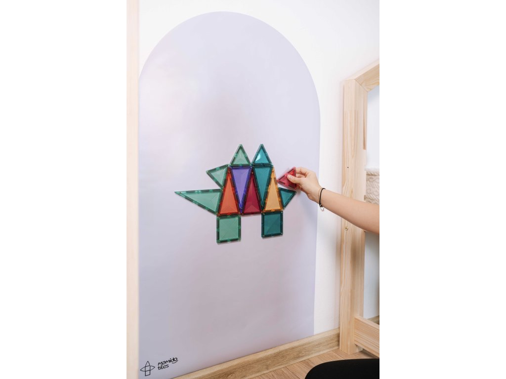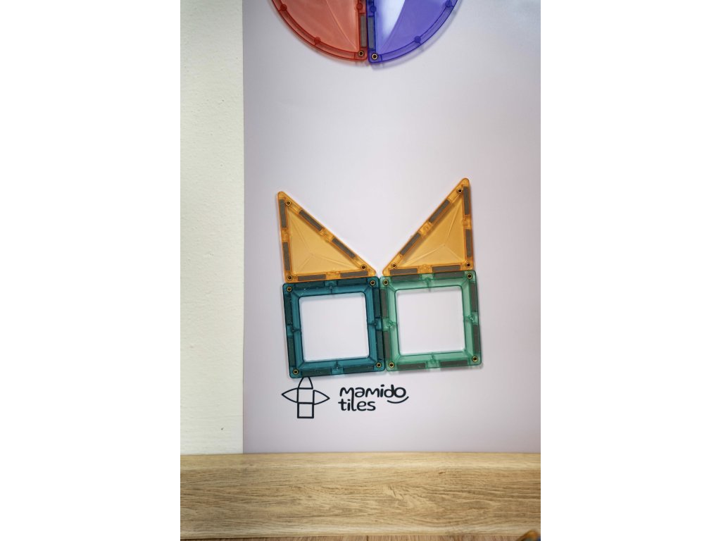 Tapetul magnetic Mamido Tiles va aduce copiilor și mai multă distracție, creativitate și învățare datorită puterii magnetice și instalării ușoare. Pur și simplu lipiți-o pe un perete neted și, în cel mai scurt timp, va apărea un spațiu interactiv pentru magneți, desen cu cretă, pictură cu culori lavabile și scris cu marker pe tablă.