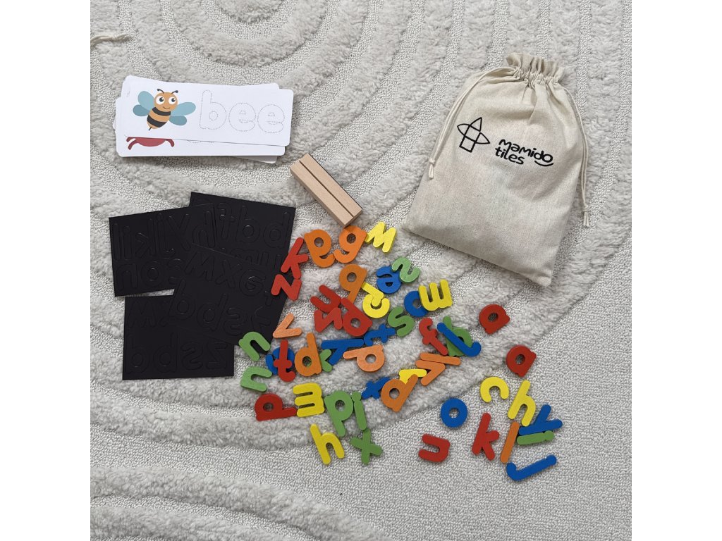 Acest set magnetic creativ Mamido Tiles Magic Bag va transforma învățarea literelor și a limbii engleze într-o distracție preferată. Literele din lemn sunt fabricate din lemn de înaltă calitate, sunt magnetice și în culori frumoase, vibrante, atrăgând imediat copiii la joacă. În pachet vei găsi 52 de litere, cu ajutorul cărora poți forma primele cuvinte, completa fișe sau crea propriile inscripții pe orice suprafață magnetică.