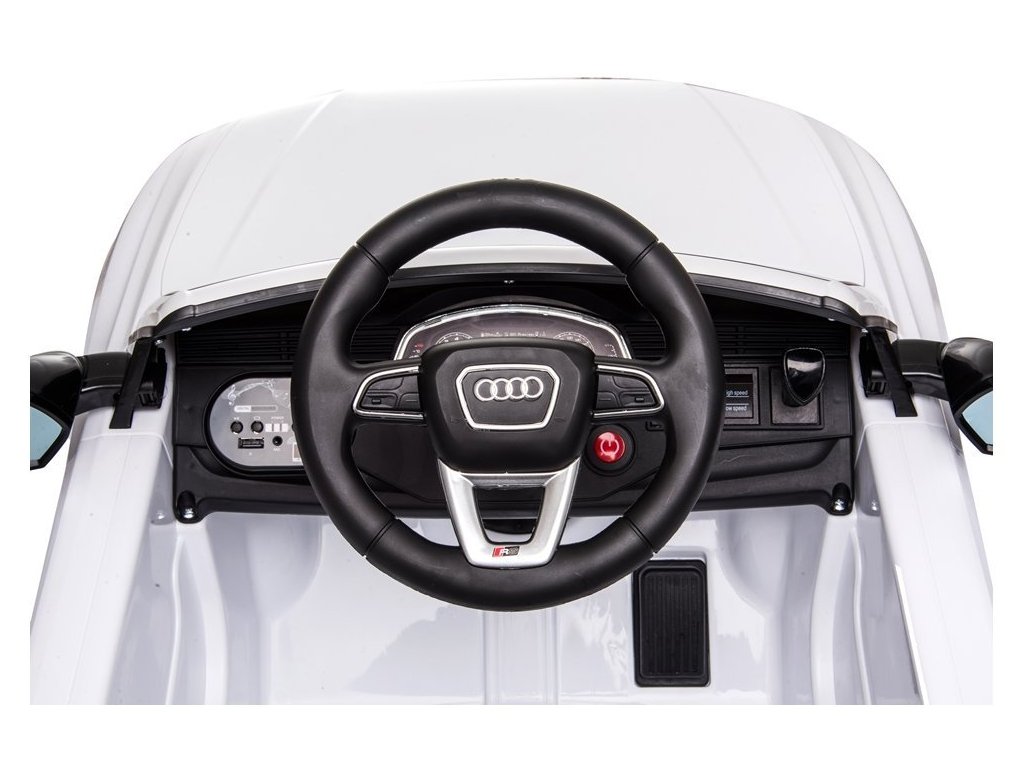 Mașina electrică de jucărie pentru copii de la marca licențiată Audi va captiva cu siguranță orice iubitor de vehicule de calitate. Este echipat cu roți din spumă EVA , care sunt silențioase și pot face față diferitelor tipuri de teren. Copilul stă într-un scaun moale din piele ecologică.