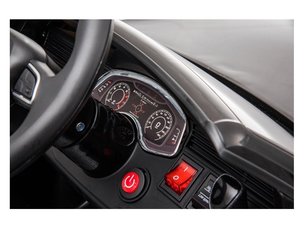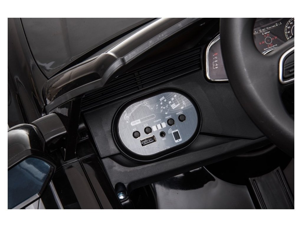 Interiorul este echipat cu un panou muzical cu intrari MP3, USB, Bluetooth si melodii preinregistrate. Volanul are butoane cu efecte sonore. Veți auzi sunete ale motorului la pornirea vehiculului.