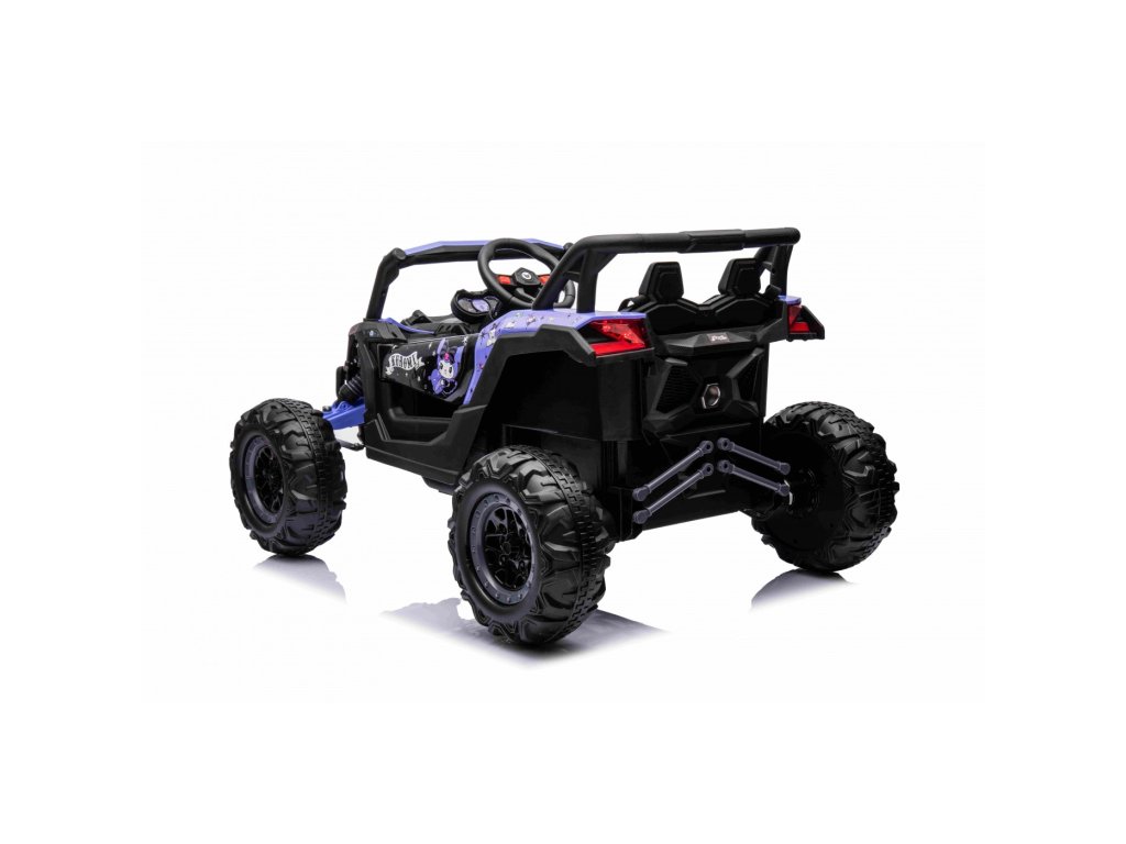 Mașina electrică Buggy cu permis Kuromi nu trebuie să lipsească din nici un garaj pentru copii. Mașina de jucărie este alimentată de o baterie de 12V 10Ah . Sarcina maximă a căruciorului este de 30 kg . În timpul călătoriei, panoul muzical cu MP3, Bluetooth și USB îl va interesa cu siguranță pe copil .