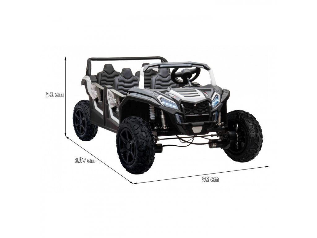 Mașina electrică de jucărie Buggy cu patru motoare puternice cu o putere totală de 600W nu trebuie să lipsească din nici un garaj pentru copii. Mașina de jucărie este alimentată de o baterie cu o capacitate 24 V 15,6 Ah (LI-ion). Sarcina maximă a căruciorului este de 120 kg. Un panou muzical cu MP3, Bluetooth, USB și melodii preînregistrate.