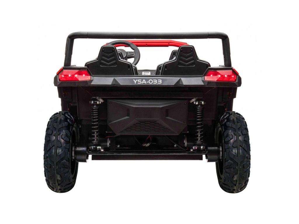 Mașina electrică de jucărie Buggy cu patru motoare puternice cu o putere totală de 600W nu trebuie să lipsească din nici un garaj pentru copii. Mașina de jucărie este alimentată de o baterie cu o capacitate 24 V 15,6 Ah (LI-ion). Sarcina maximă a căruciorului este de 120 kg. Un panou muzical cu MP3, Bluetooth, USB și melodii preînregistrate.