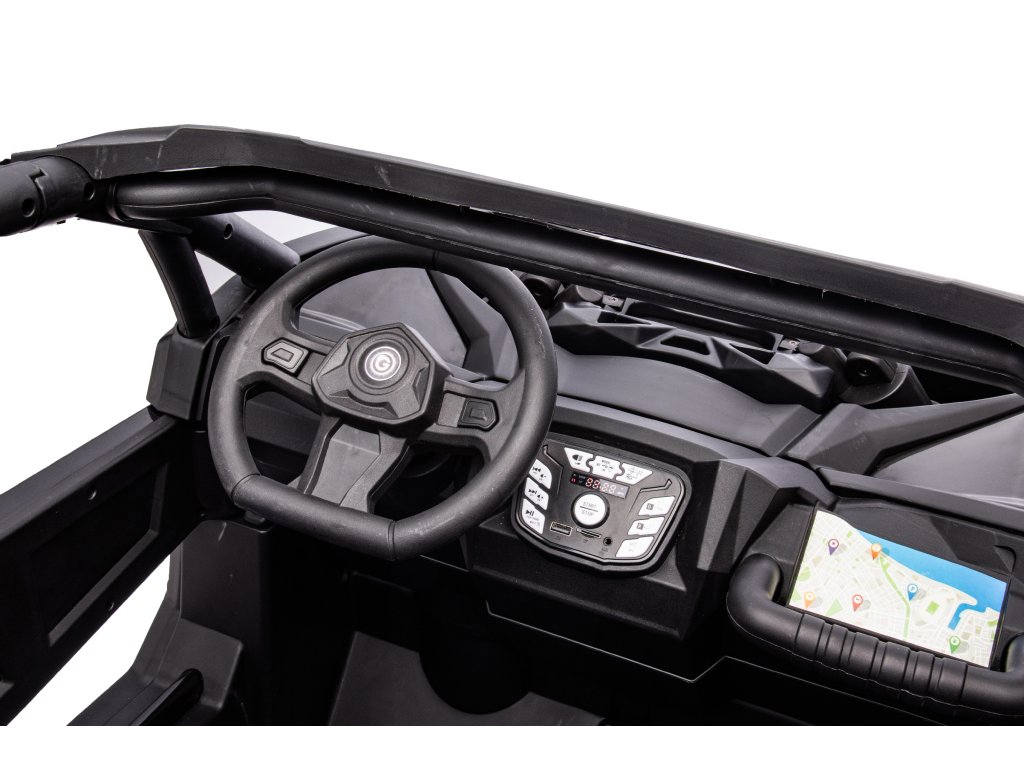 Mașina electrică de jucărie Buggy Turbo cu patru motoare puternice cu o putere totală de 800 W nu trebuie să lipsească din nici un garaj pentru copii. Mașina de jucărie este alimentată de o baterie cu o capacitate de 24V 7Ah . Sarcina maximă a vehiculului este de 60 kg. La pornire, veți auzi sunetele motorului , iar în timpul conducerii, copilul dumneavoastră va fi cu siguranță interesat de panoul muzical cu radio, MP3, melodii pre-redate și, în plus, vă puteți conecta la panoul muzical prin Bluetooth.
