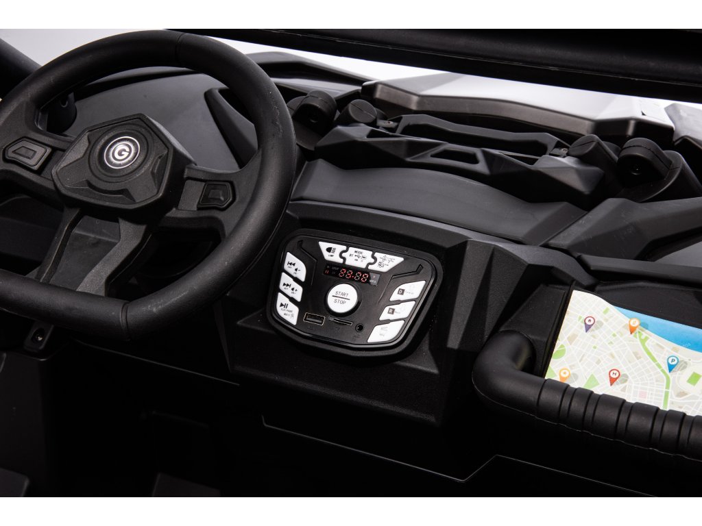 Puteți controla mașina folosind o telecomandă care funcționează la o frecvență de 2,4 GHz . Telecomanda are trei viteze și un buton STOP de siguranță , care, atunci când este apăsat, oprește imediat mașina. Scaunul este fabricat din plastic de înaltă calitate și are centuri de siguranță cu 2 puncte.