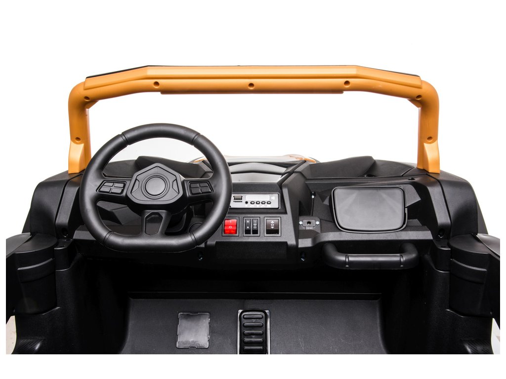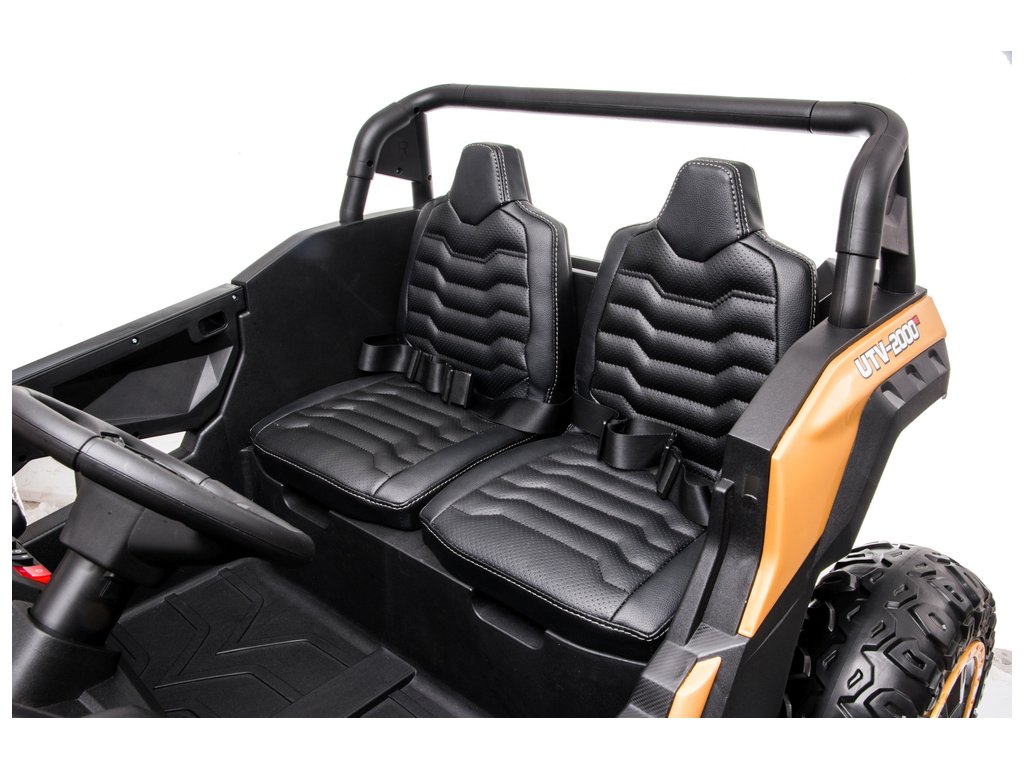 O mașină electrică unică pentru copii, cu motoare electrice ultra-puternice de 2x200W și o baterie de 24V 7Ah , care poate face față nu numai tipului de suprafață asfaltată. Roțile mari și masive sunt fabricate din spumă EVA întărită, care garantează o călătorie confortabilă, silențioasă și netulburată.