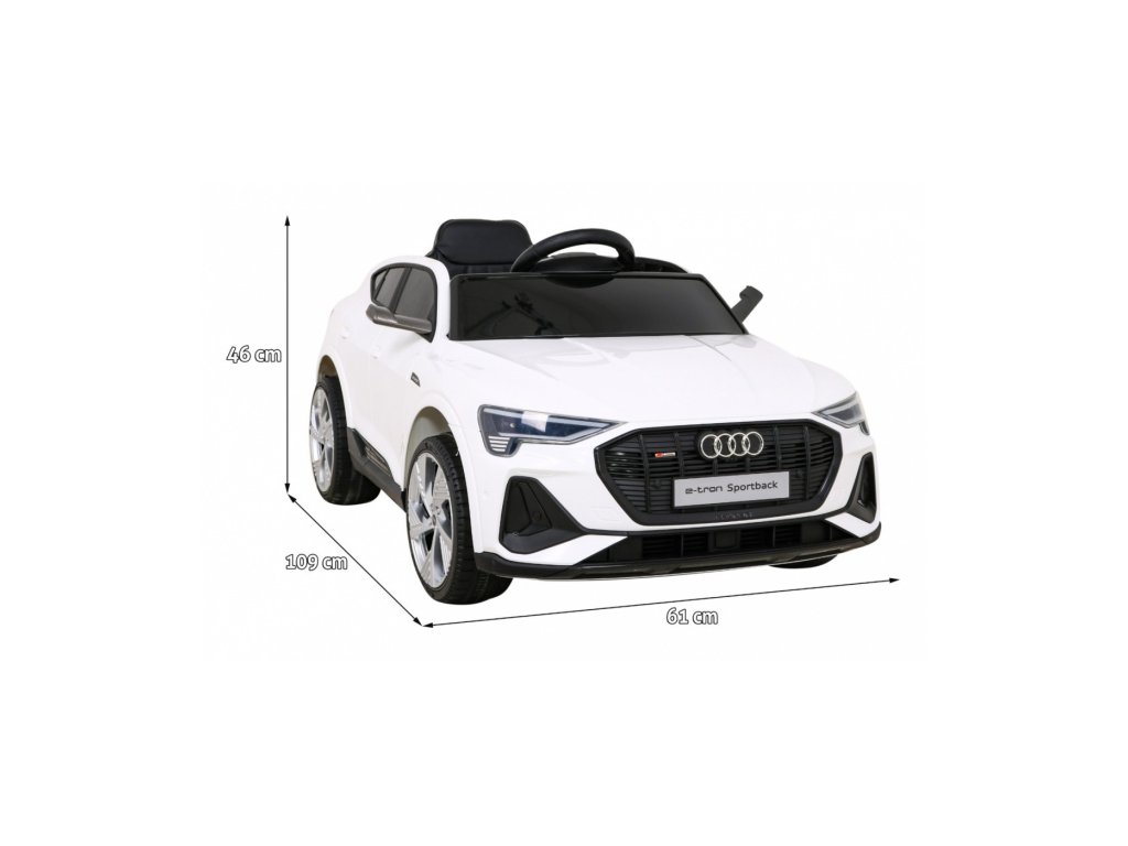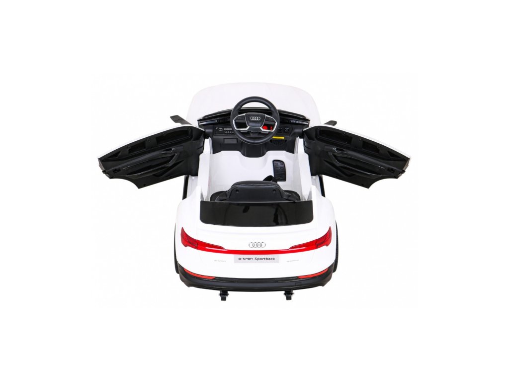 Mașina de jucărie electrică Audi E-Tron Sportback are patru motoare cu o putere de 2 5W, ceea ce înseamnă că mașina de jucărie are o tracțiune 4x4. Avantajul mașinii de jucărie este că are o tracțiune variabilă, ceea ce înseamnă că poți comuta între două și patru roți. Rotile din spuma EVA si un scaun din piele ecologica asigura o plimbare confortabila. Panoul muzical cu MP3, radio FM , Bluetooth, intrari pentru card SD, USB si AUX va face cu siguranta calatoria mai placuta pentru copil. Capacitatea de transport a mașinii de jucărie este de 25 kg . Mașina de jucărie are iluminare LED față și spate, uși care se deschid și amortizoare spate.
