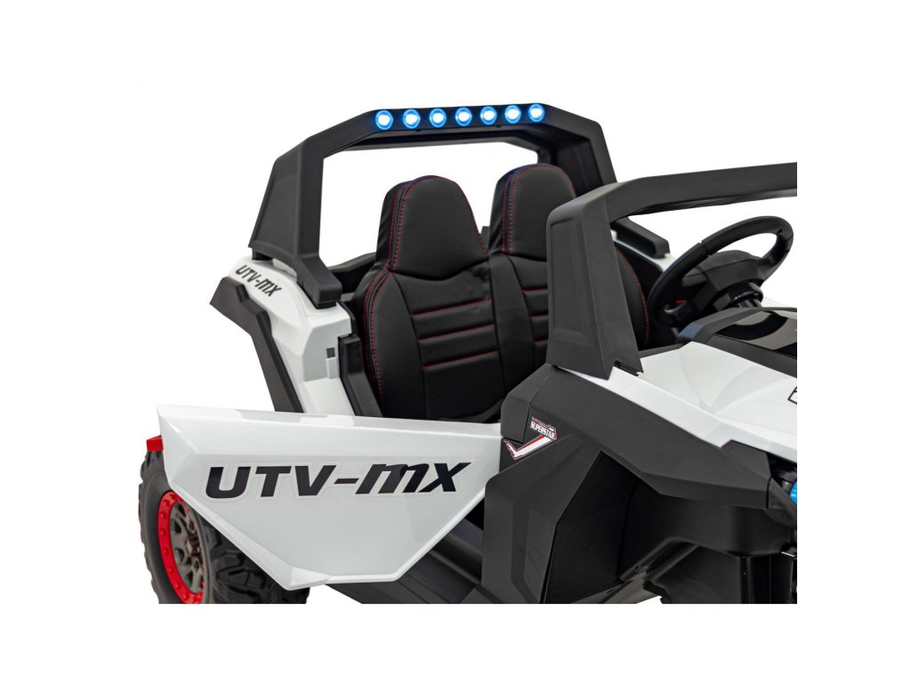 Mașinuța de jucărie pentru copii Buggy UTV-MX 2000N este dotată cu roți moi din spumă EVA, silențioase și care se adaptează la diferite tipuri de teren. Copilul stă într-un scaun confortabil din piele ecologică , iar siguranța este asigurată de centurile de siguranță.