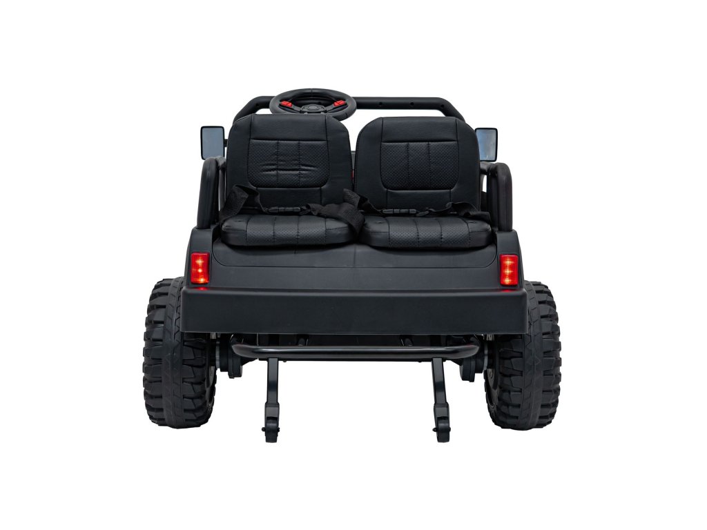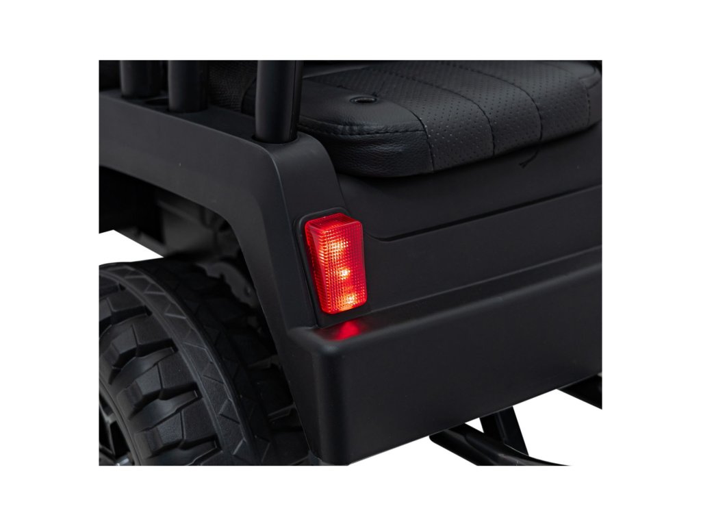 Confortul este asigurat de patru locuri îmbrăcate în piele ecologică și suspensie pe ambele axe. Siguranța este accentuată de centurile de siguranță și de o funcție de pornire ușoară. Roțile moi din spumă EVA sunt potrivite pentru o varietate de terenuri.