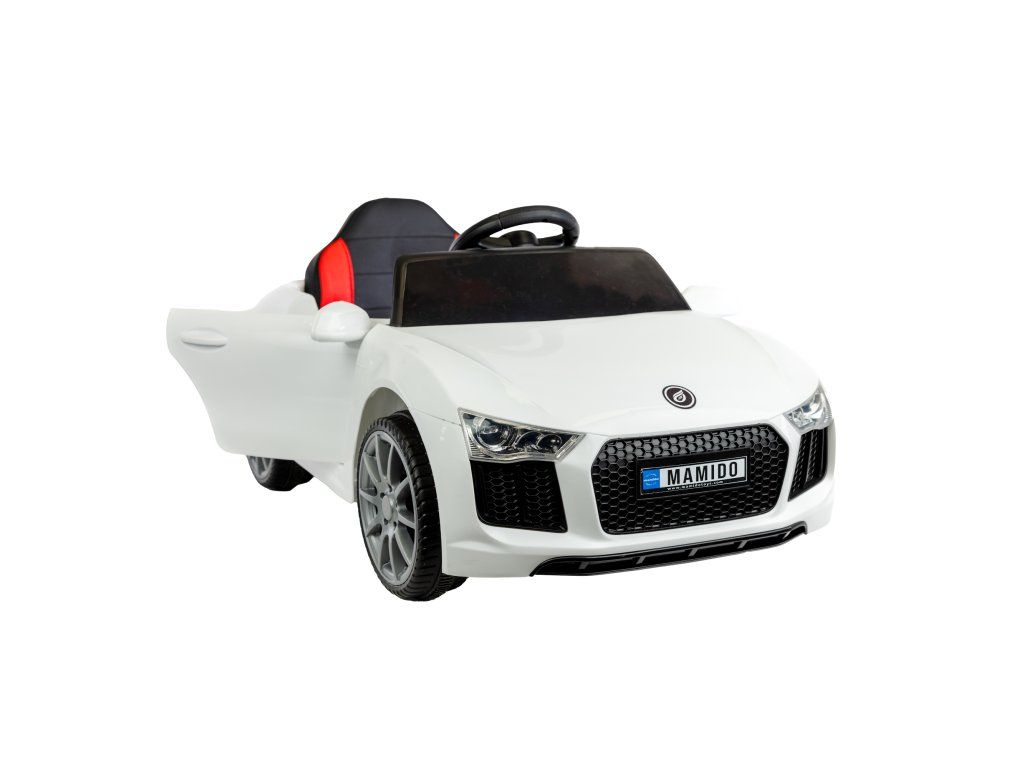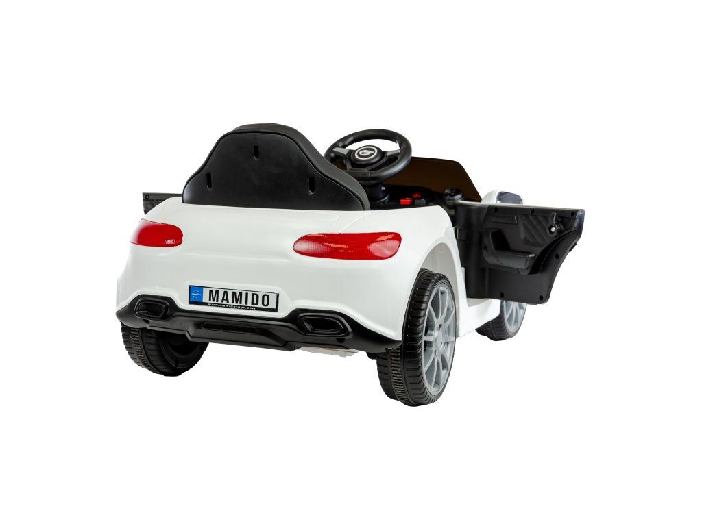 Interiorul mașinii de jucărie este echipat cu un scaun din piele ecologică cu centuri de siguranță , un panou muzical cu intrări AUX, MP3, USB și butoane cu melodii. Luminile LED din față luminează drumul.