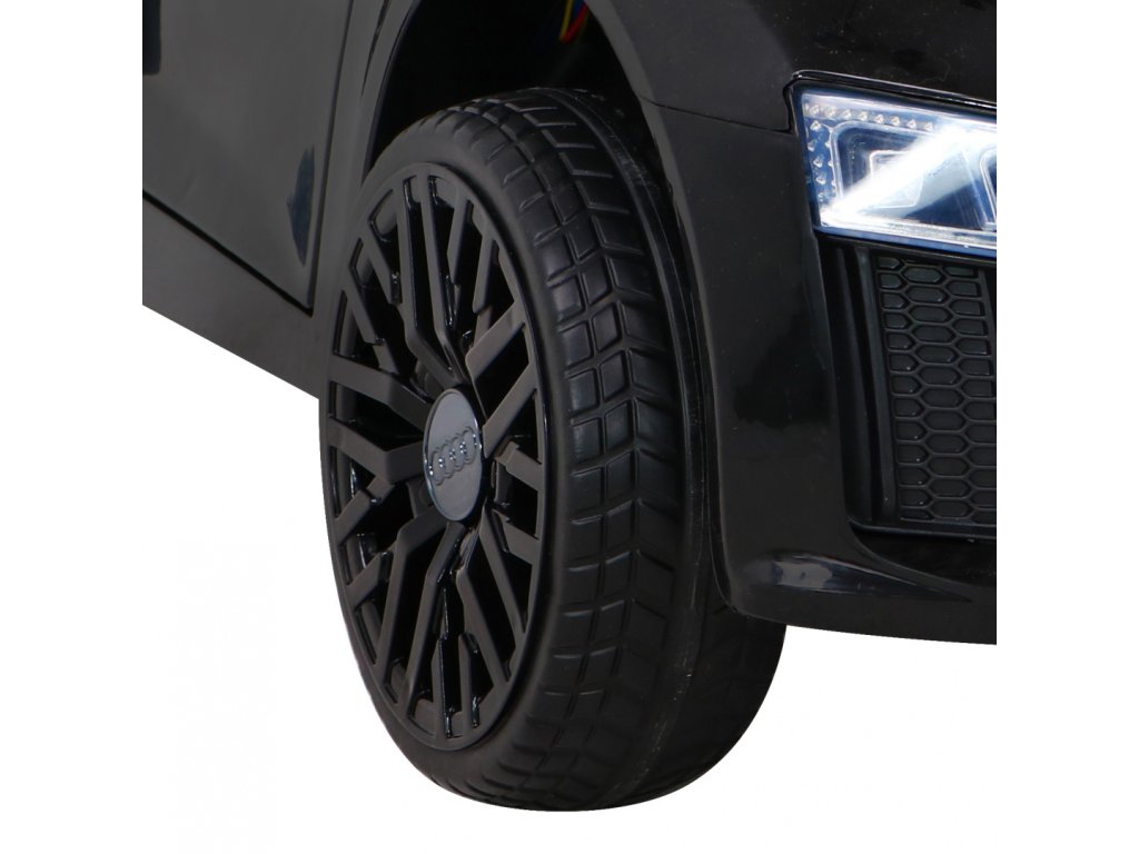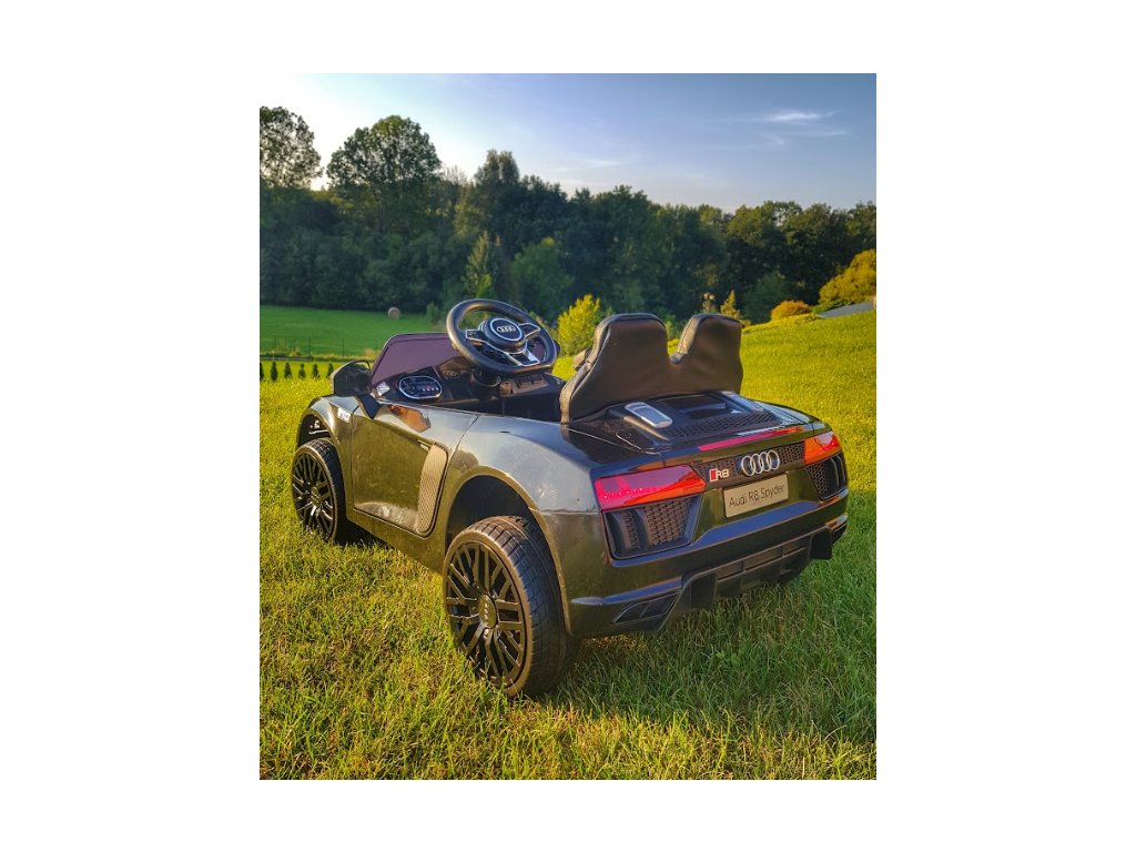 Audi R8 Spyder cu licență pentru copii este echipat cu roți moi din spumă EVA , care sunt silențioase și se adaptează la diferite tipuri de teren. Copilul se aseaza intr-un scaun confortabil din piele ecologica, iar siguranta este asigurata de centurile de siguranta.