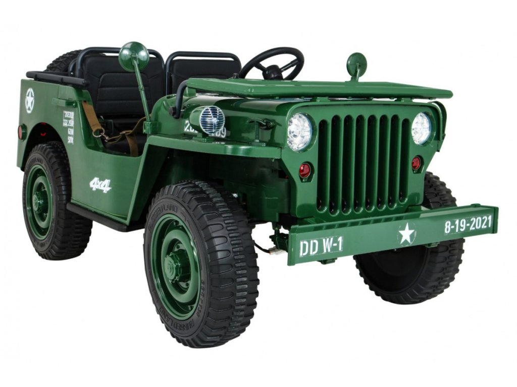 Mașina electrică pentru copii Willys se adaptează la diferite tipuri de suprafețe datorită roților din spumă EVA și motorului și bateriei puternice. Datorită tracțiunii pe patru roți, copilul poate pleca în off-road. Mașina militară Willys are o capacitate de încărcare de 60 kg , așa că vă puteți duce prietenul sau fratele la o plimbare. Efectele de sunet și lumină vor face cu siguranță călătoria mai plăcută. Puteți utiliza conexiunea Mini Jack , USB , MP3 sau Bluetooth pe panoul muzical.